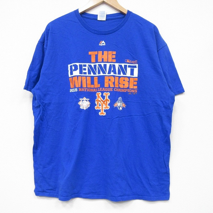 【商品名】 XL★古着 半袖 Tシャツ メンズ MLB ニューヨークジャイアンツ コットン クルーネック 青 メジャーリーグ ベースボール 野球