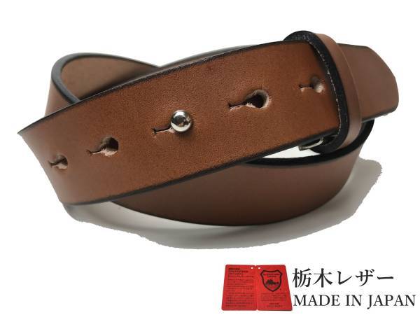 新品 栃木レザーベルト 本革 メンズ 濃茶 国産 牛革 35mm バックルなし ひっかけ カジュアル W005DB