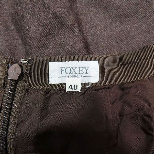 フォクシー ブティック FOXEY BOUTIQUE タイト ストレート スカート 膝丈 無地 ブラウン 40 レディース
