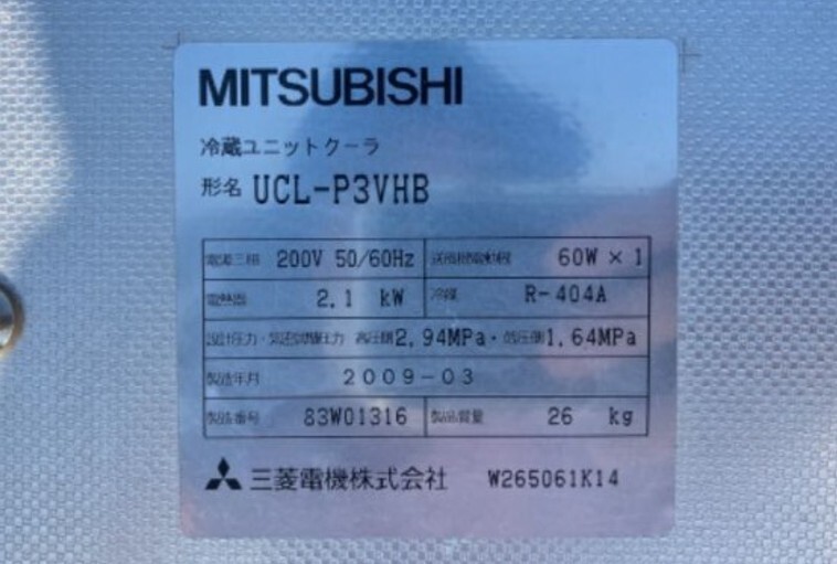 型 番:室内機(冷蔵ユニットクーラ)UCL-P3VHB × 1台