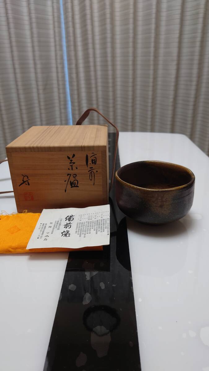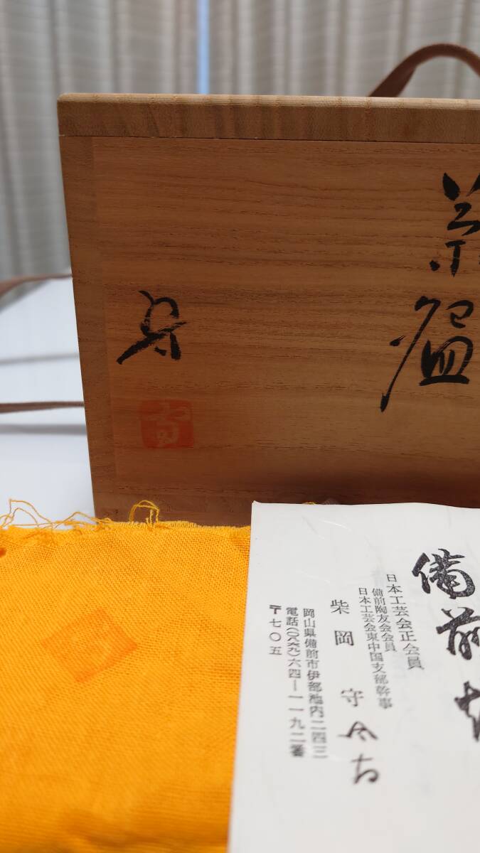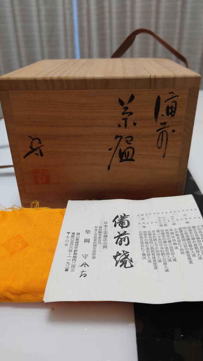 備前焼 在銘柴岡守 茶碗 茶道具 置物 友箱入り