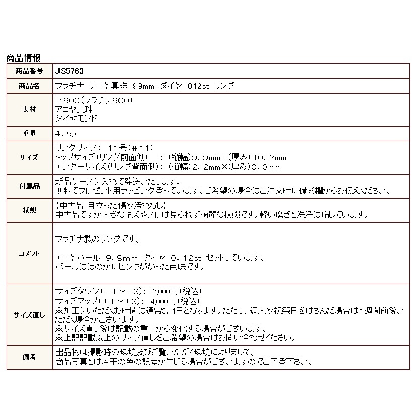 商品名 | プラチナ アコヤ真珠 9.9mm ダイヤ 0.12ct リング |