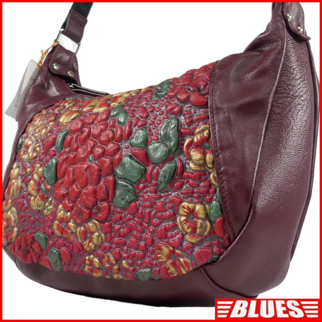 即決★N.B.★未使用 オールレザーショルダーバッグ バブルレザー 羊革 ラムスキン レディース えんじ 本革 肩掛けカバン 斜め掛け 本皮