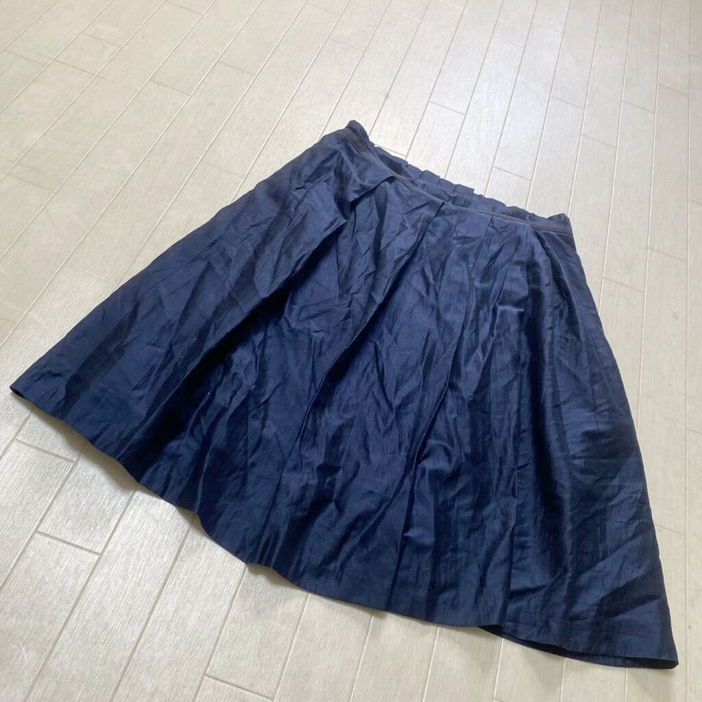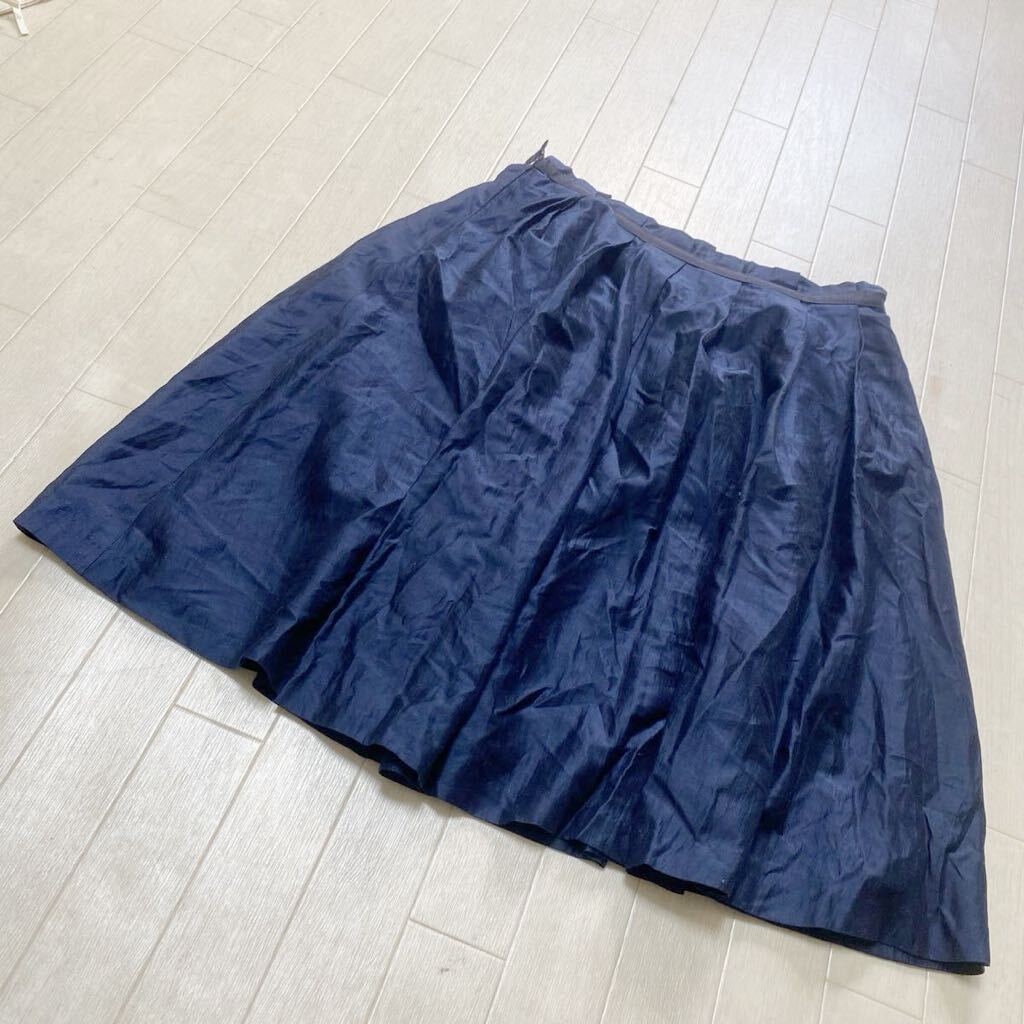 3991☆ ROPE ロペ ボトムス スカート プリーツスカート 膝丈スカート レディース EX-2 ネイビー 無地