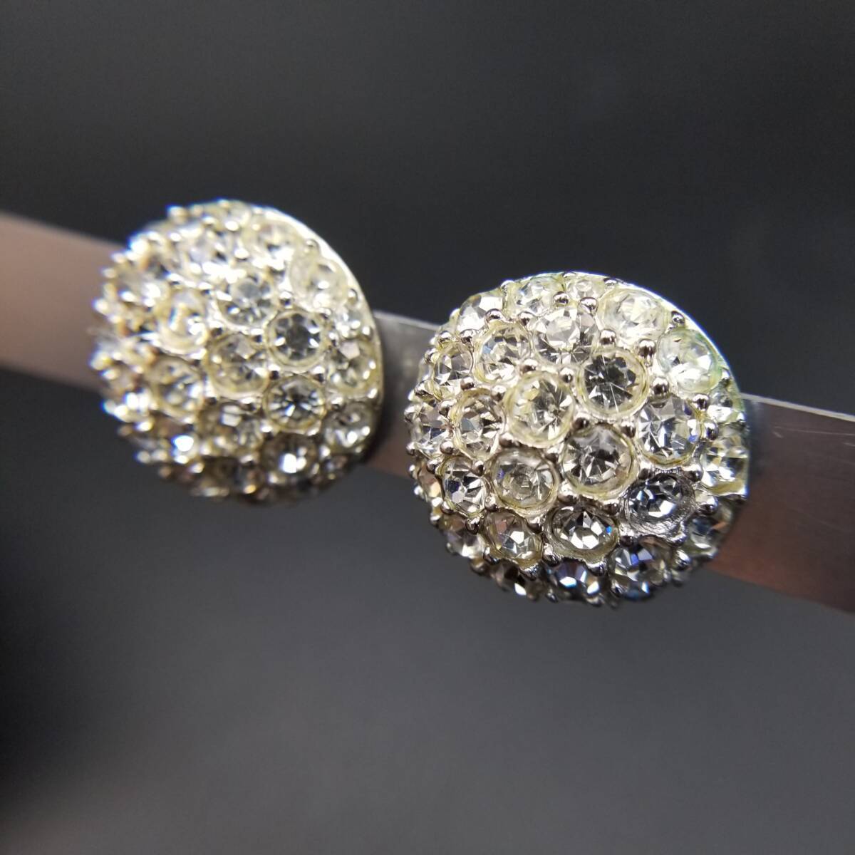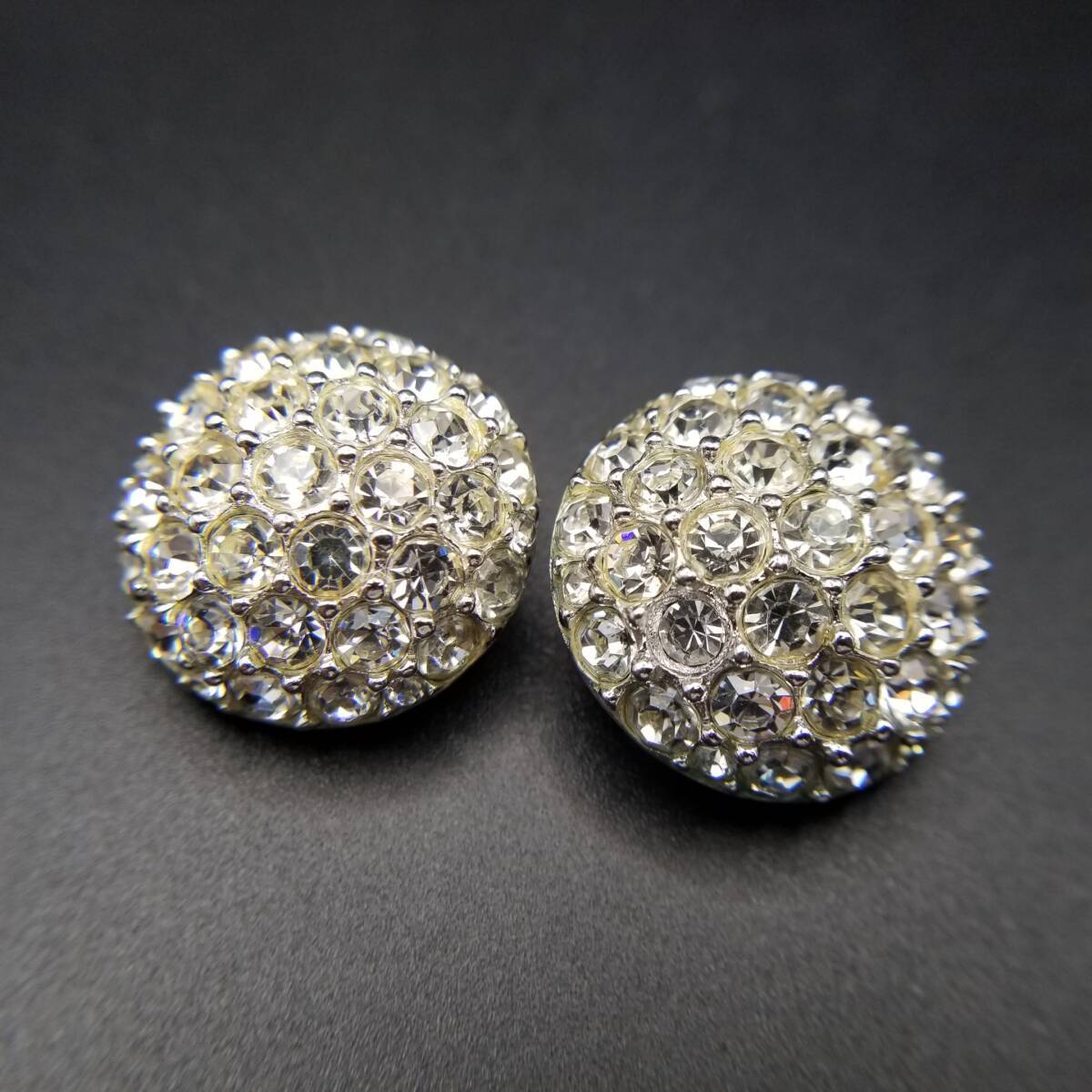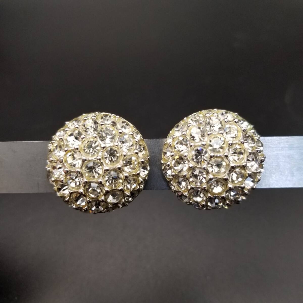 BELLINI クリアガラス ラウンド型 パヴェ ヴィンテージ クリップイヤリング ゴージャス 華やか コスチュームジュエリー Y18-Z