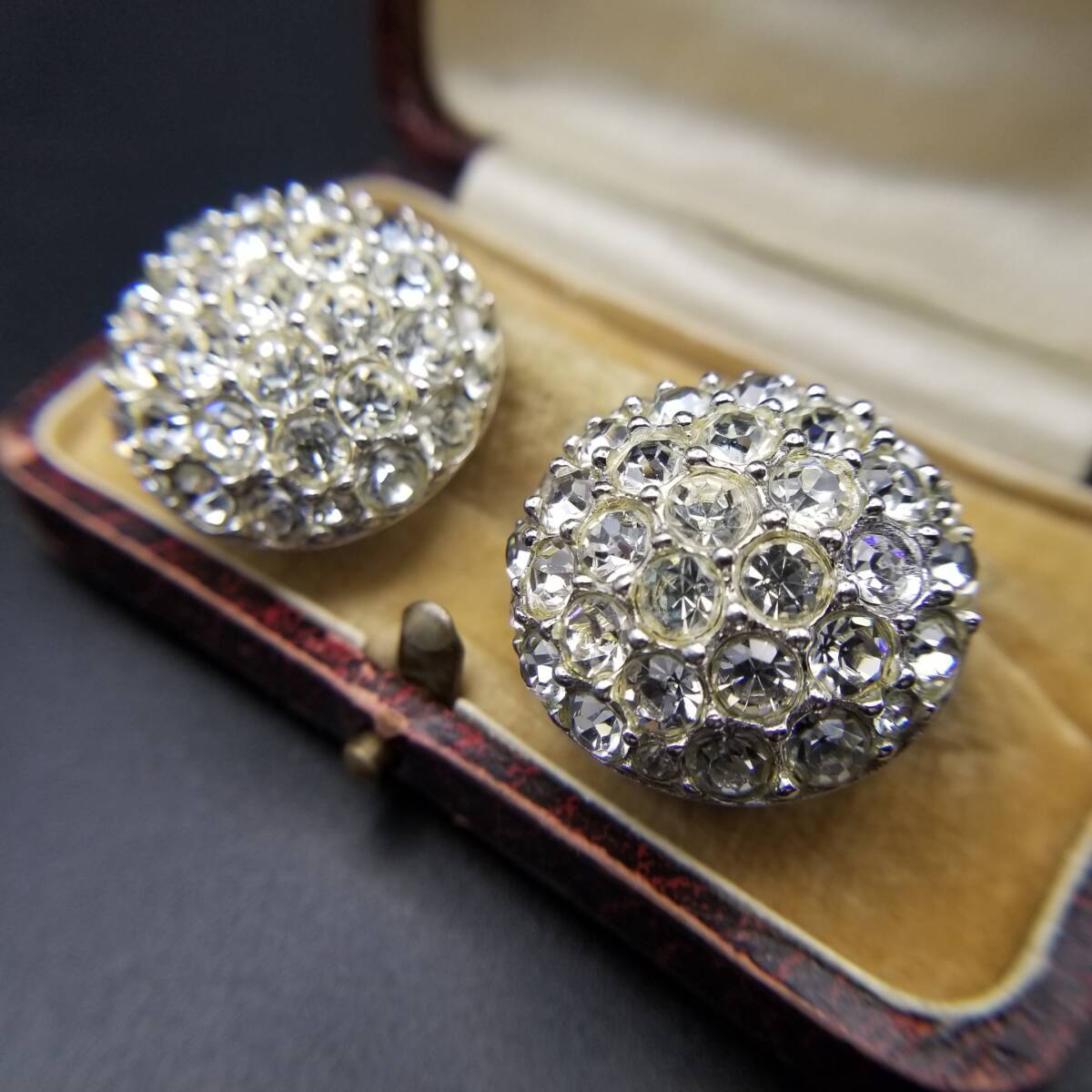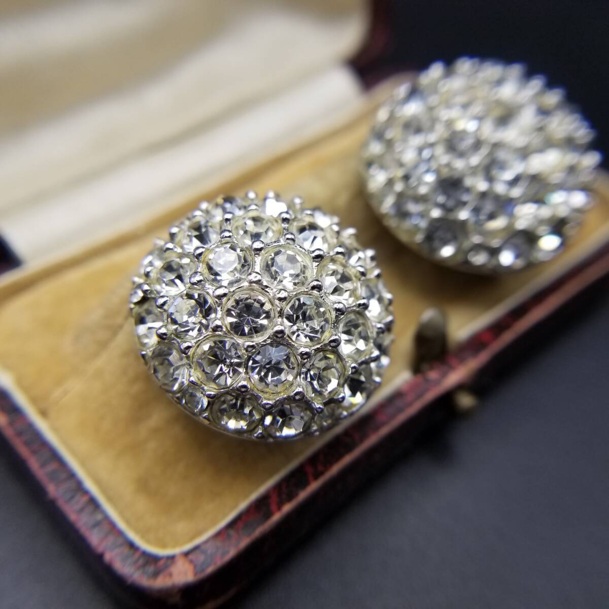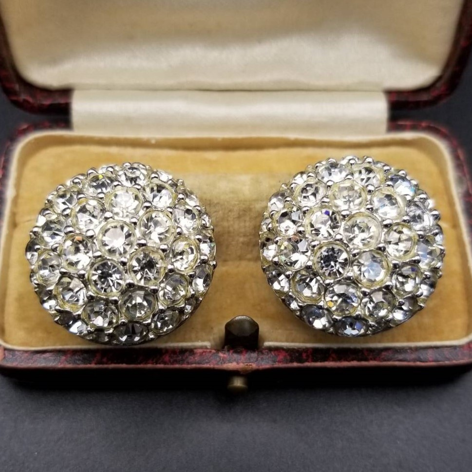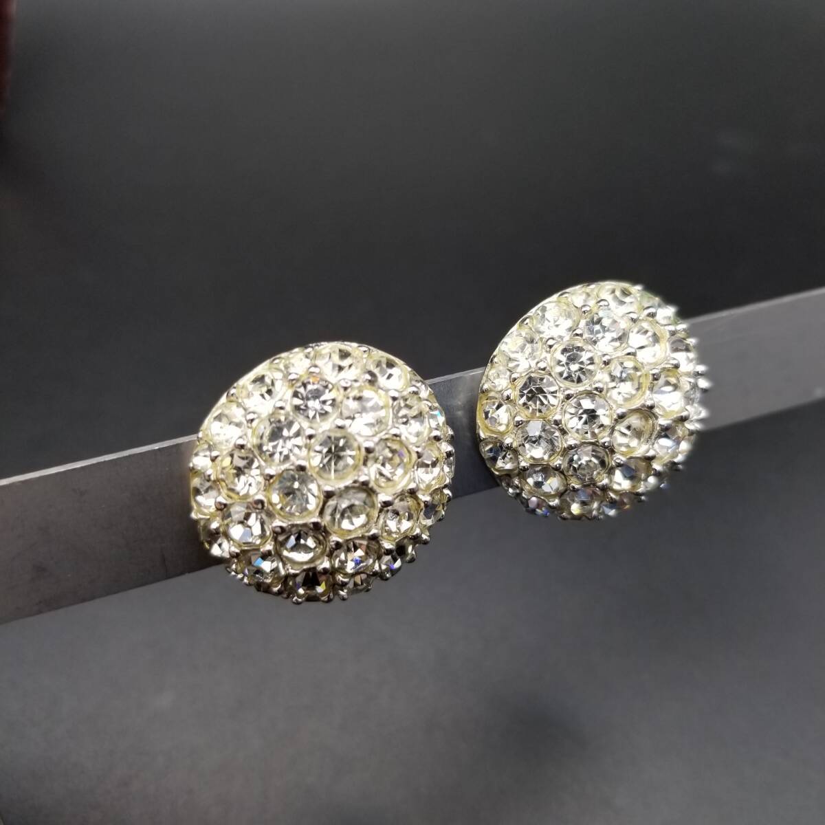 BELLINI クリアガラス ラウンド型 パヴェ ヴィンテージ クリップイヤリング ゴージャス 華やか コスチュームジュエリー Y18-Z