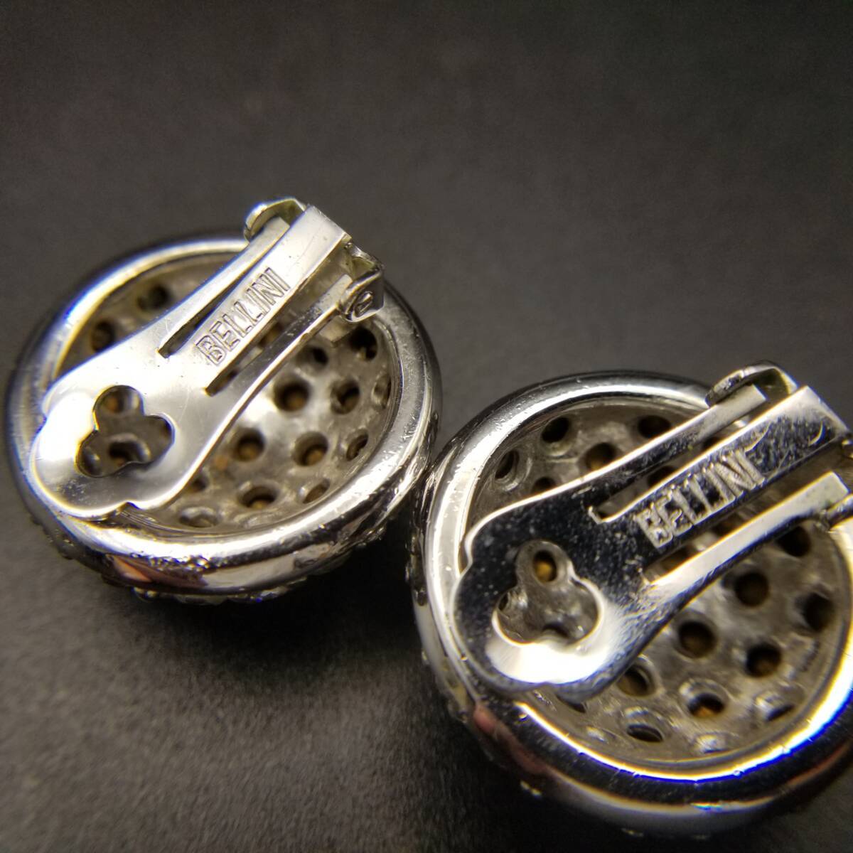 BELLINI クリアガラス ラウンド型 パヴェ ヴィンテージ クリップイヤリング ゴージャス 華やか コスチュームジュエリー Y18-Z