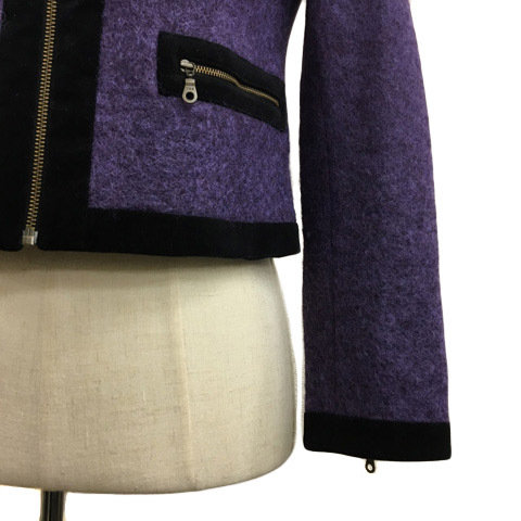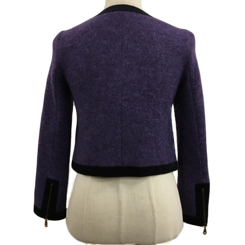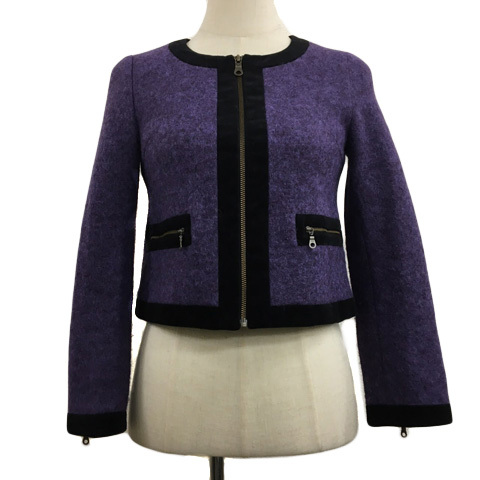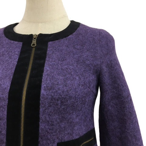 イミット オブ エナジー レイビームス ジャケット ノーカラー ジップアップ 無地 ウール 長袖 0 紫 黒 パープル ブラック レディース