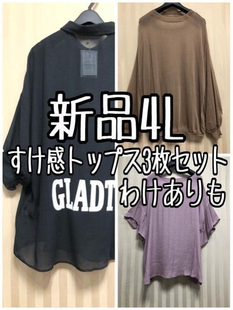 新品☆4L♪シアーすけ感おしゃれトップス3枚セット♪わけありも☆x508
