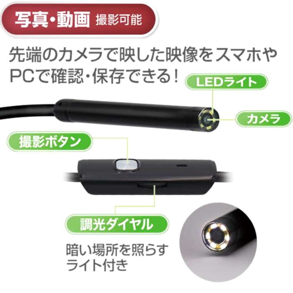 カメラ先端にLEDを搭載しているので暗い部分もハッキリと見ることできます!
