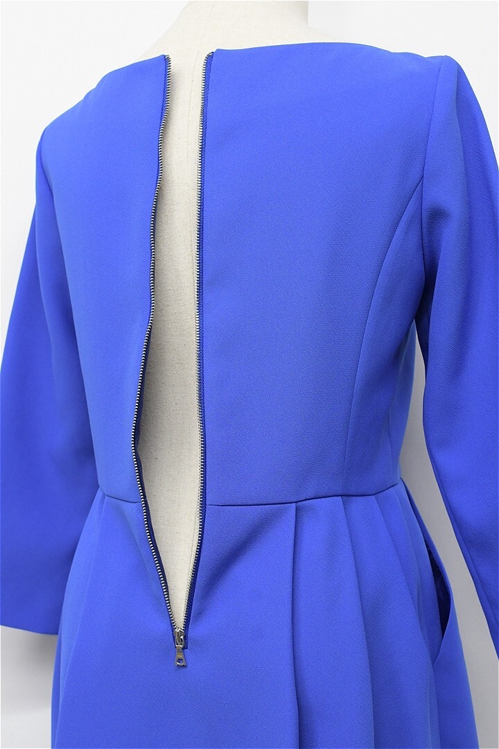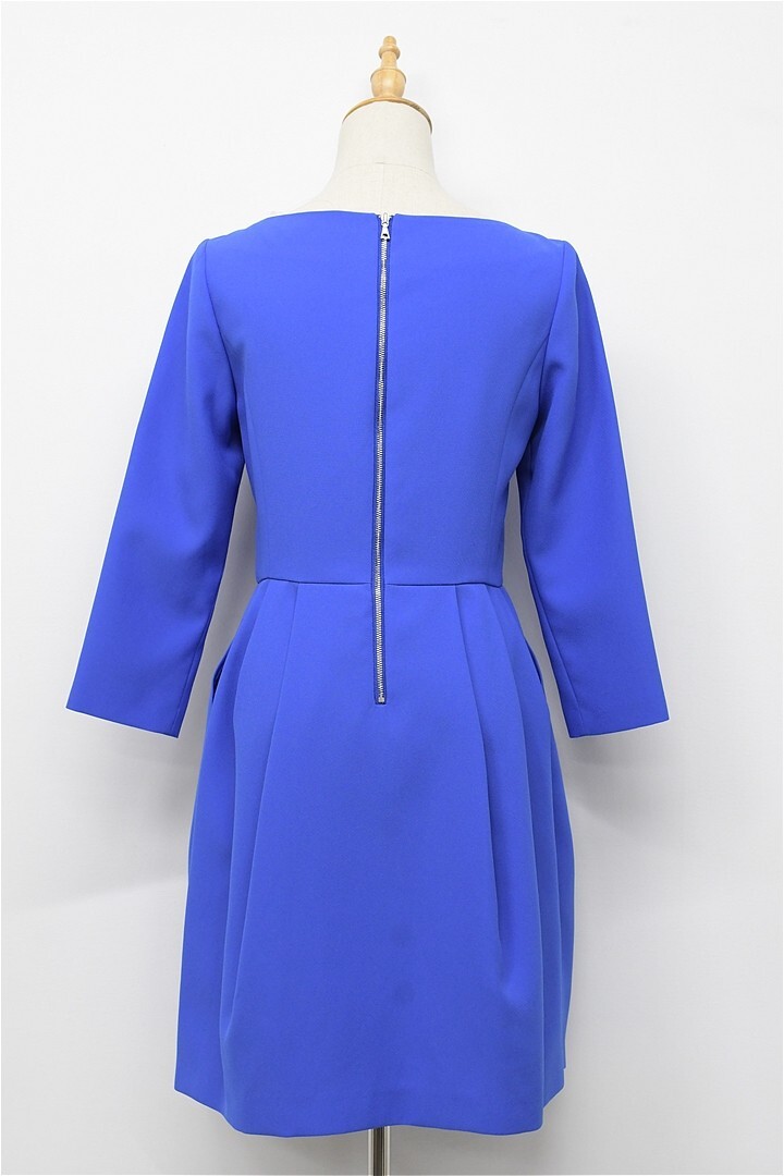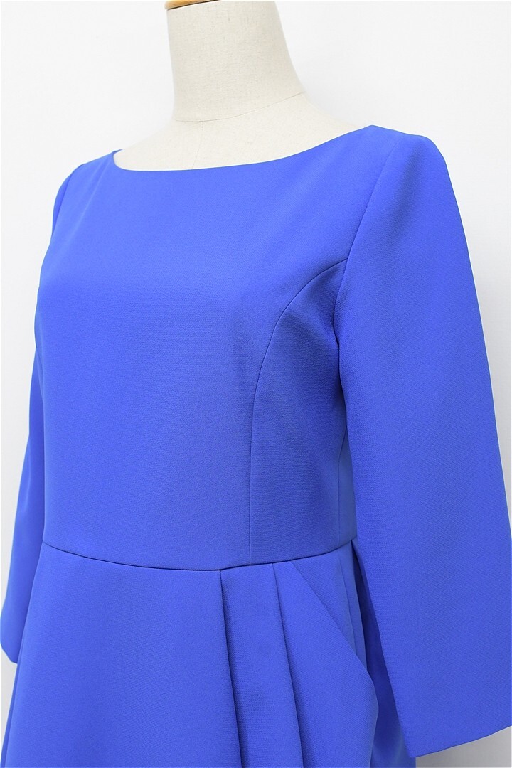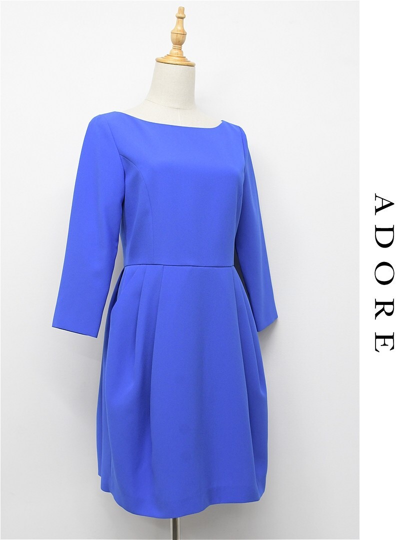 G472/ADORE ひざ丈ワンピース ドレス コクーン 美ライン ひざ上 7分袖 36 S 青