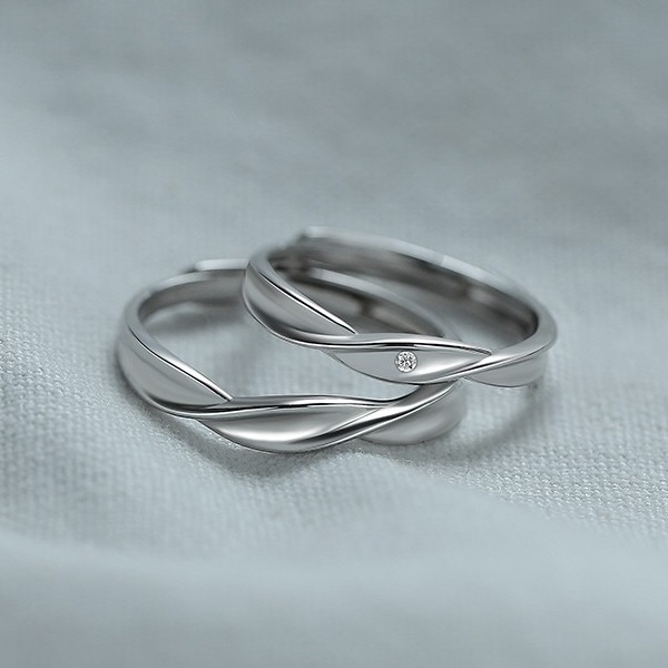 細身のツイストデザインで仕上げたプレーンな印象のペアリング。