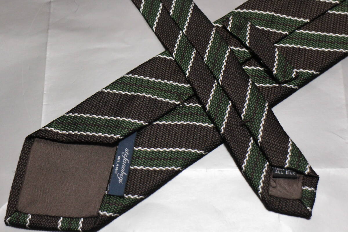 ステファノビジ*阪急新品ネクタイ超シック艶ブラウン*グリーン*シルバーレジメン極上ジャガードヘリンボーン織ハンドメイド