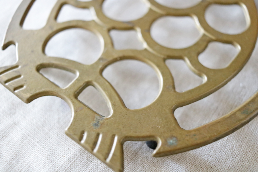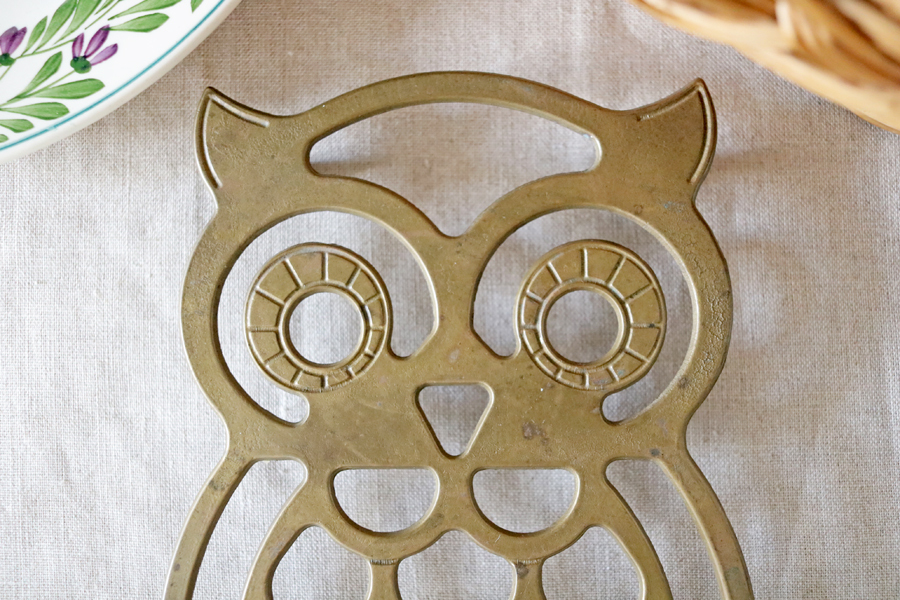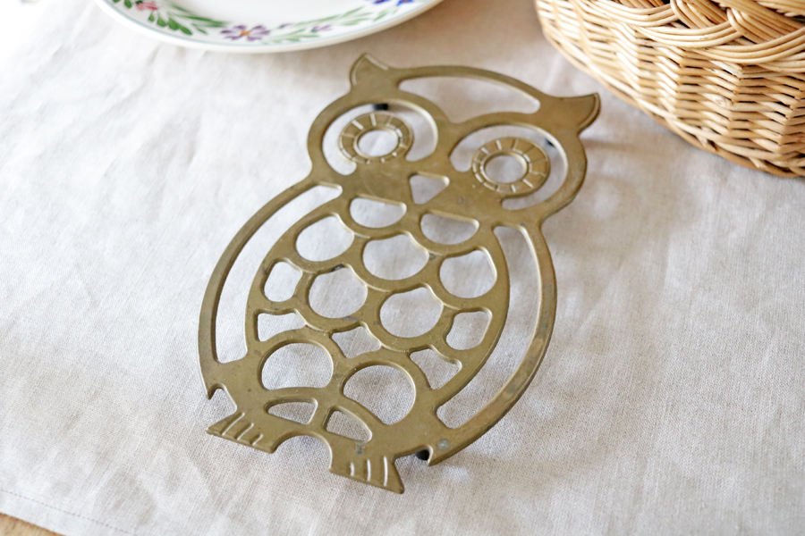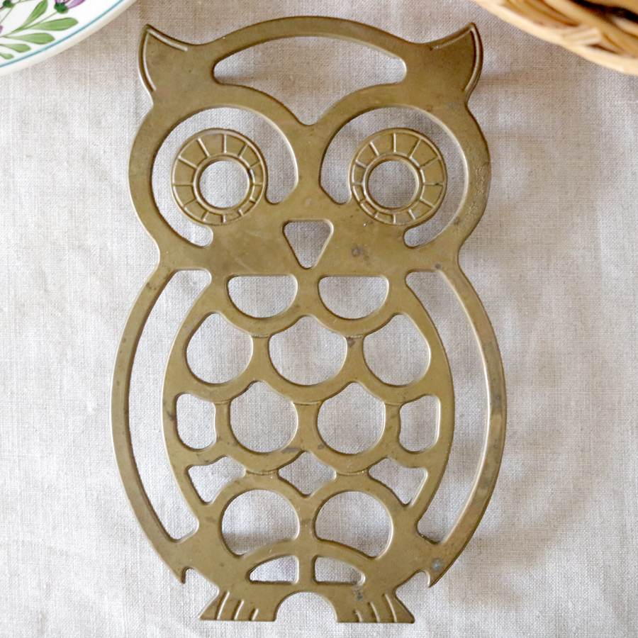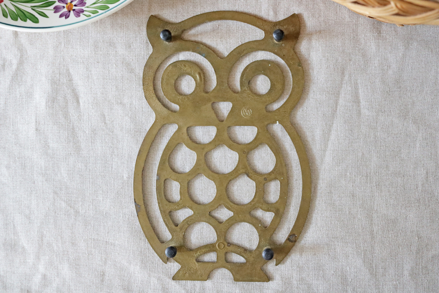 『真鍮のふくろう』フランスアンティーク ふくろう フクロウ 真鍮 ブラス 鍋敷き 鍋敷 鉄製 ビンテージ キッチン 鳥 デザイン 皿