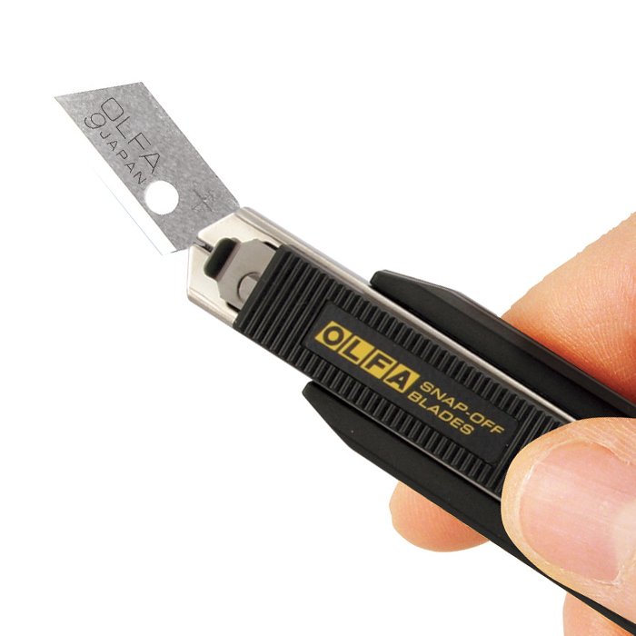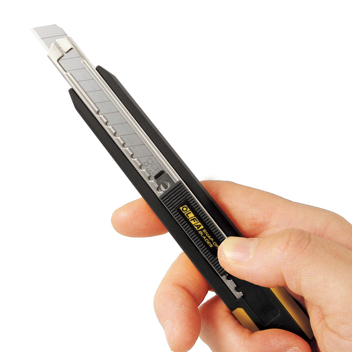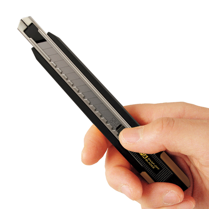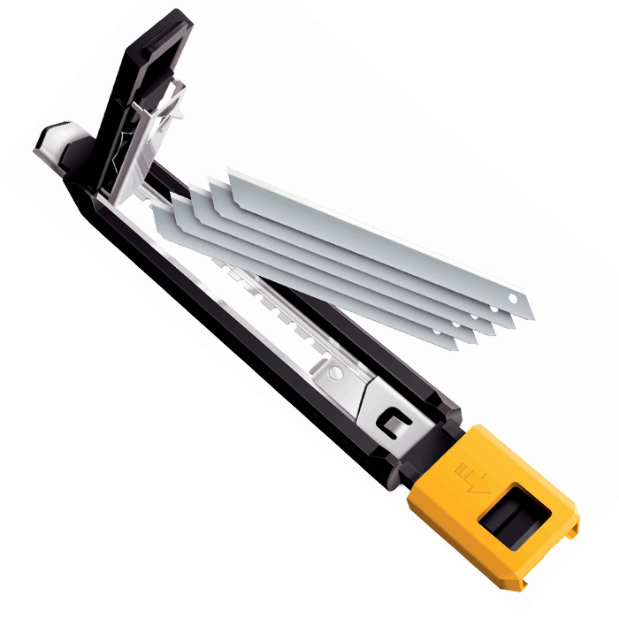最大5枚まで刃を本体に内蔵できる連発式小型カッターナイフ。
