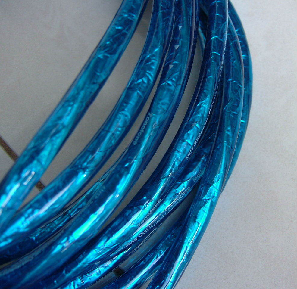 ■外装ジャケット:ブルーに透明、強固に締めた導体と共に防振を考慮した構造