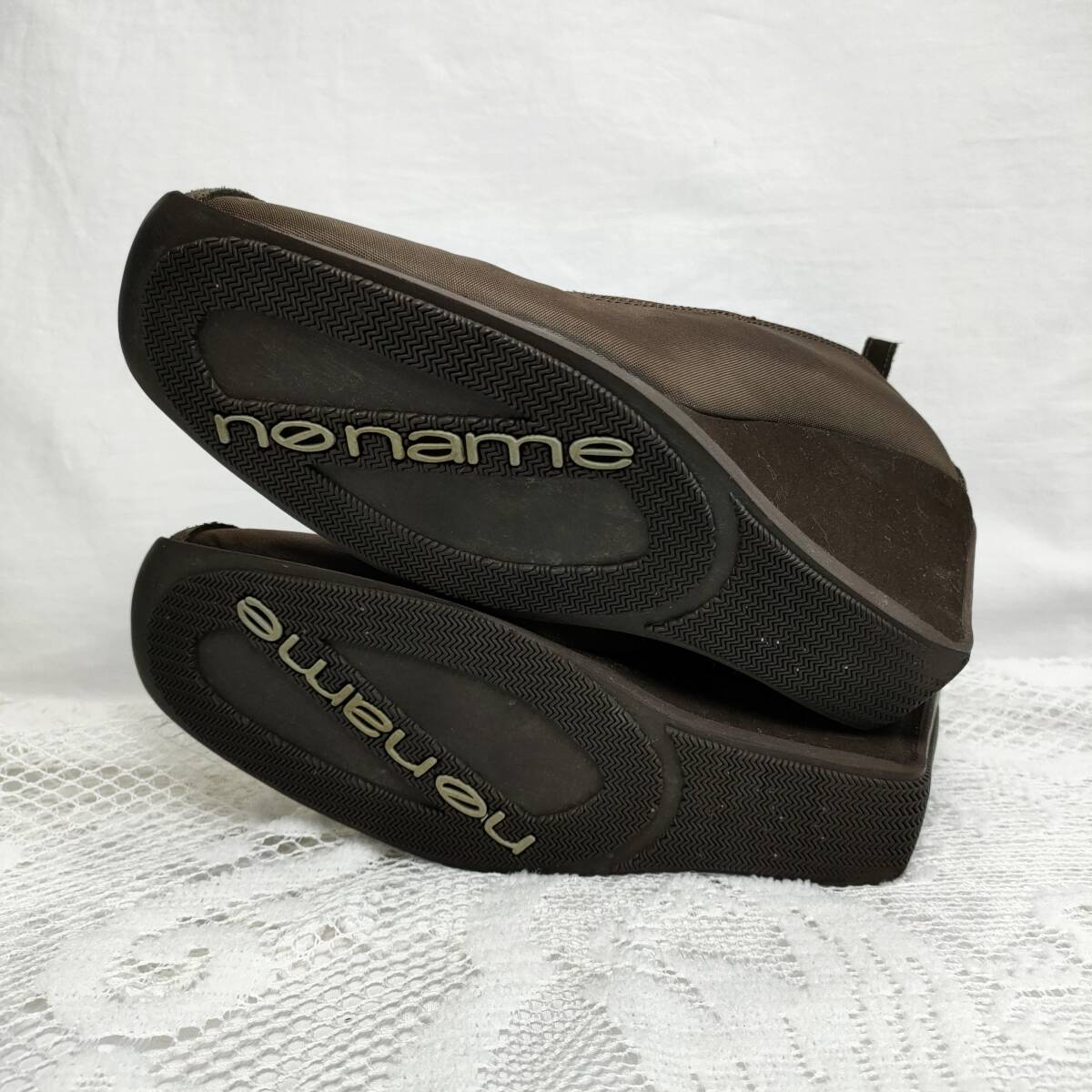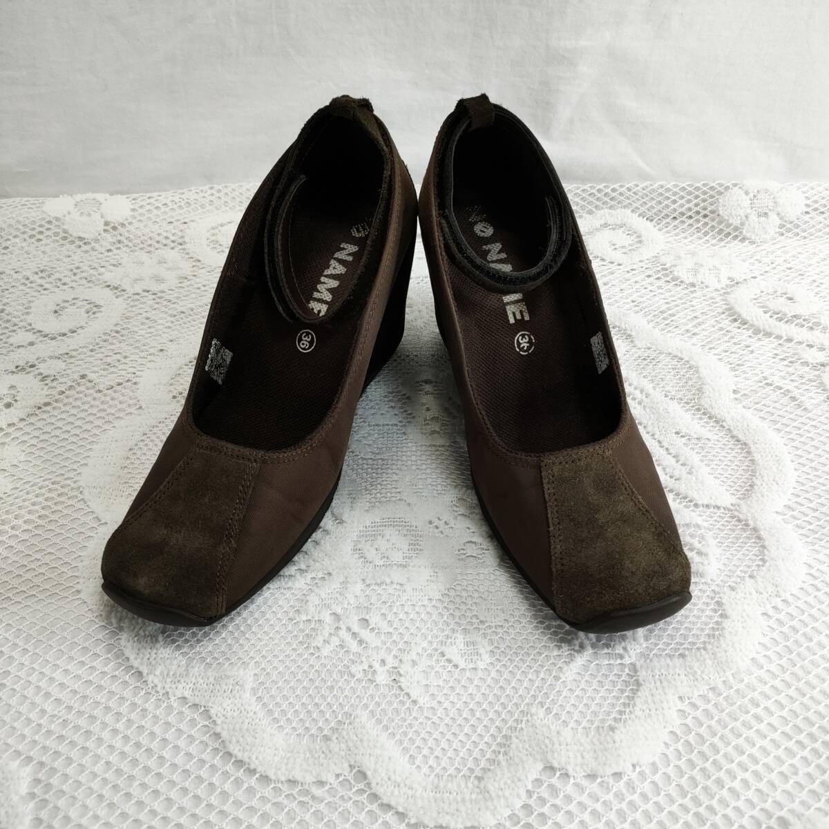 ★NO NAME★23.0cm パンプス ノーネーム レディース ブラウン スエード アンクルストラップ ウェッジソール M106
