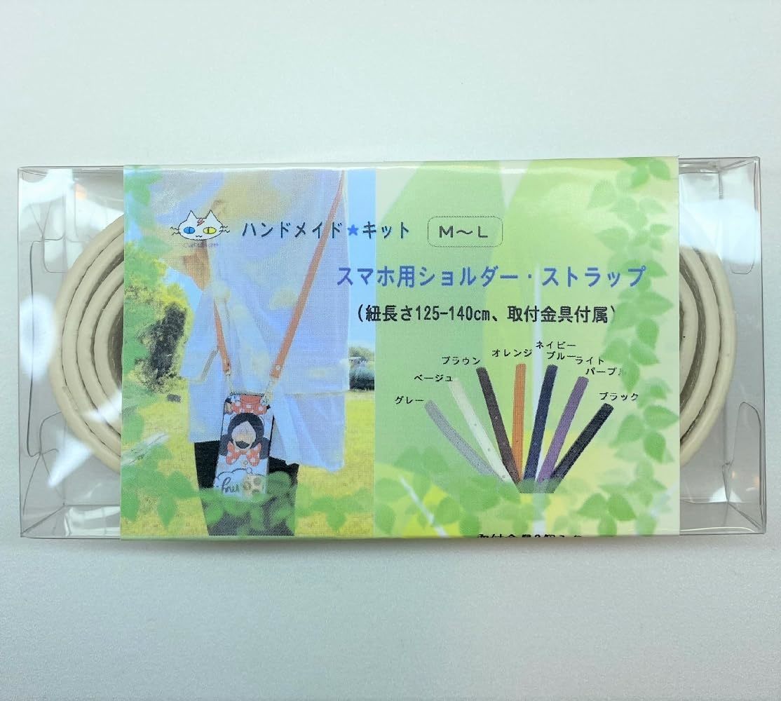 スマホ用ショルダーストラップ(サイズM-Lケース側取付金具2個付属 お手持ちのケースにしっかり取付 かんたんDIY ハンドメイド・キット 長さ調整可能 斜めがけ 紐が長い (ベージュ)