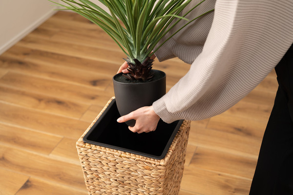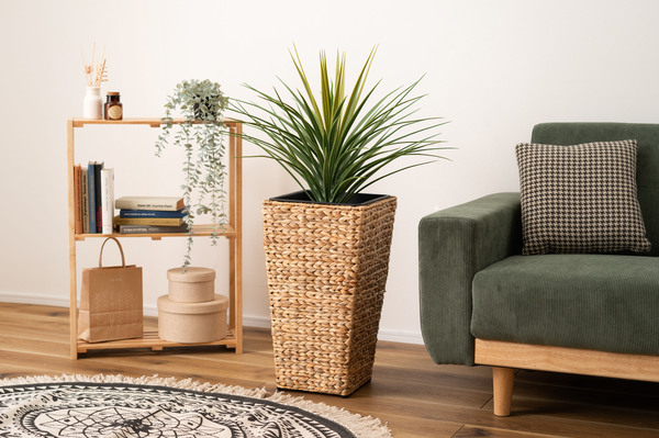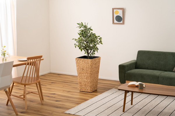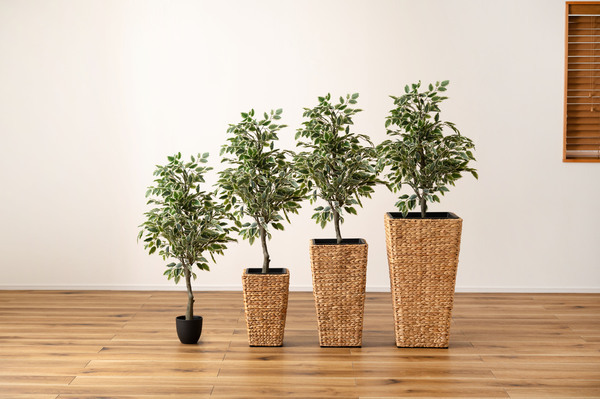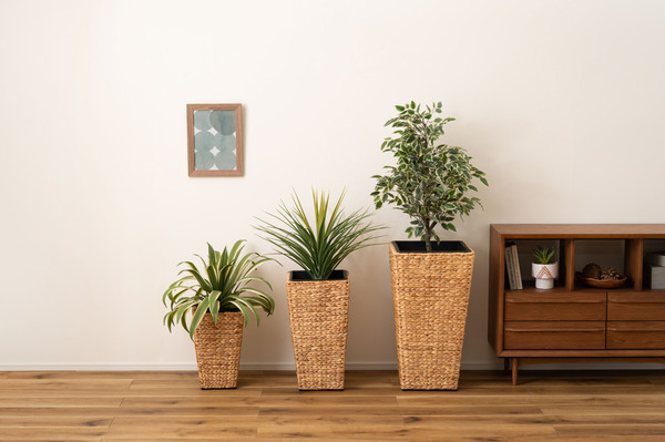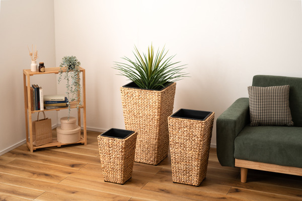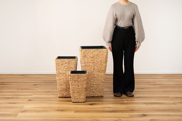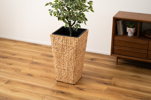 【プランター 鉢入れ】 アジアン 観葉植物 シンプル ウォーターヒヤシンス 雑貨 インテリア 室内 ブラウン 茶色 編み かご 角型 7号