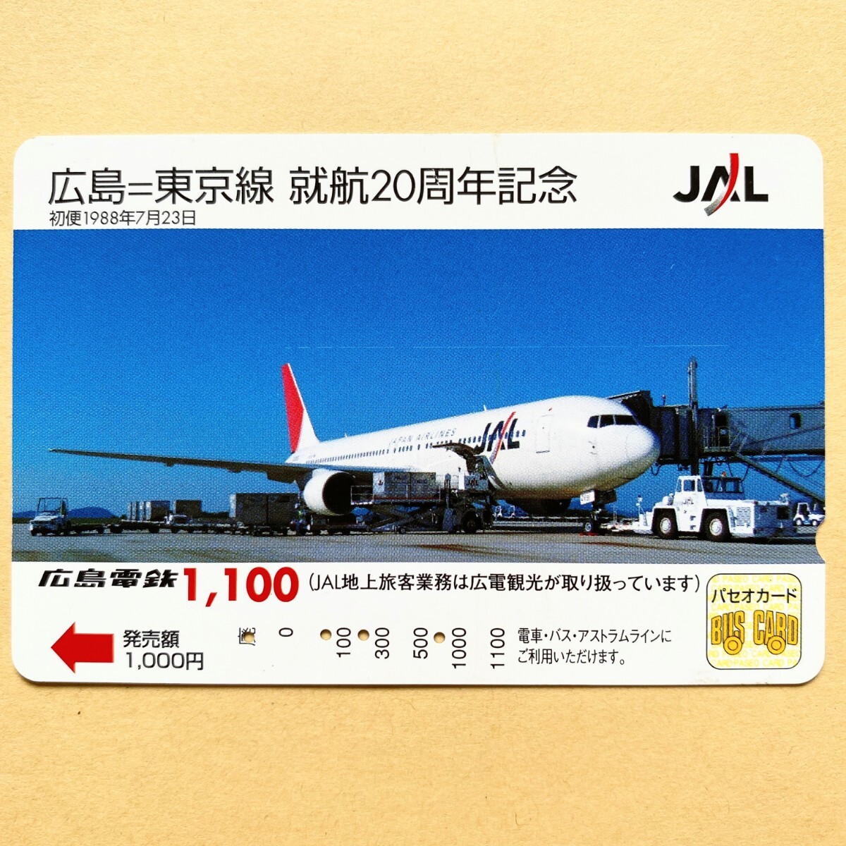 【使用済】 航空機パセオカード 広島電鉄 広島=東京線 就航20周年記念 JAL