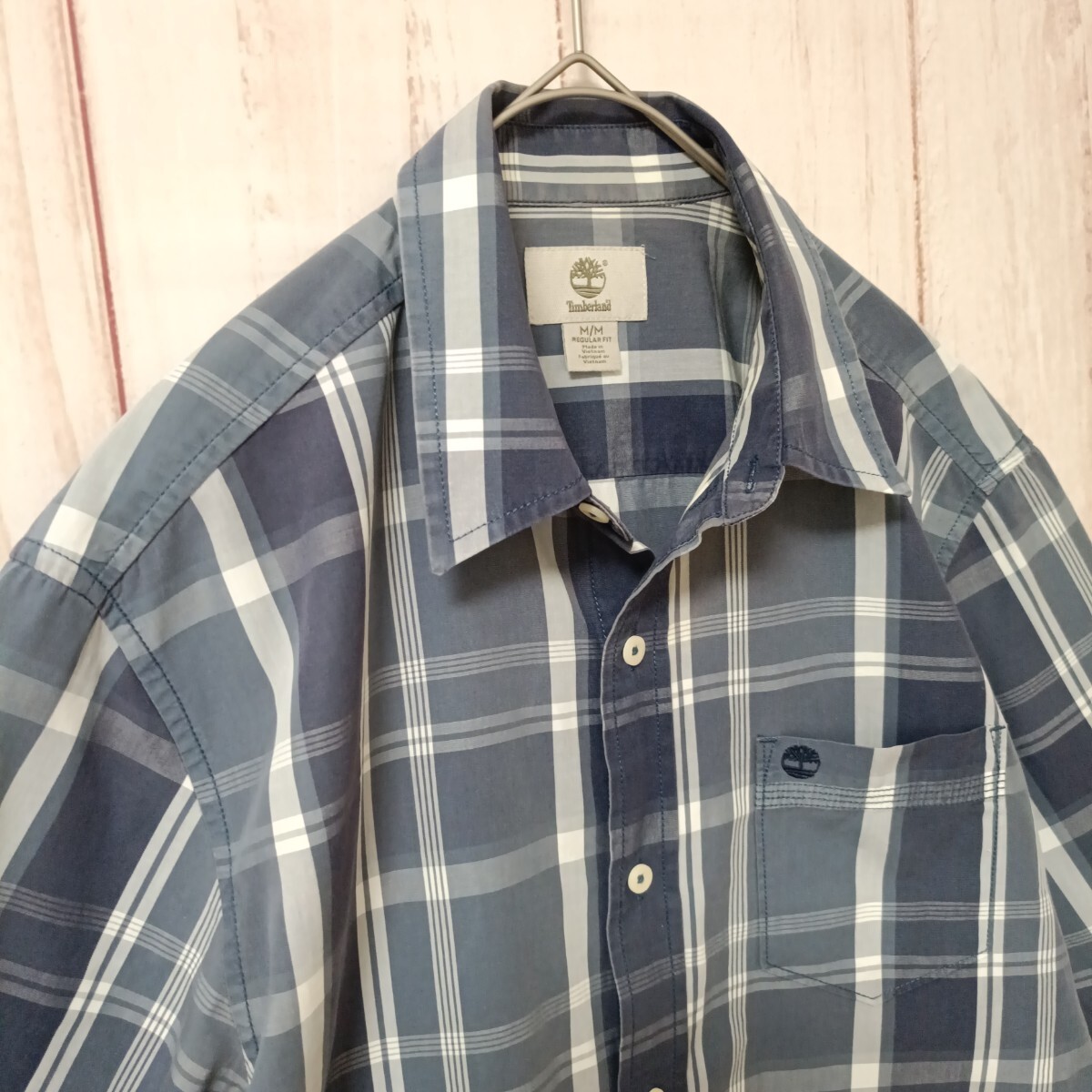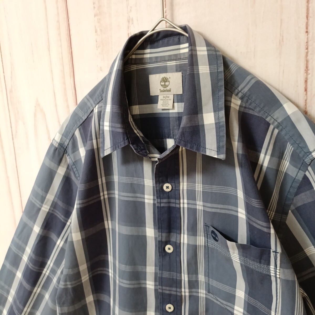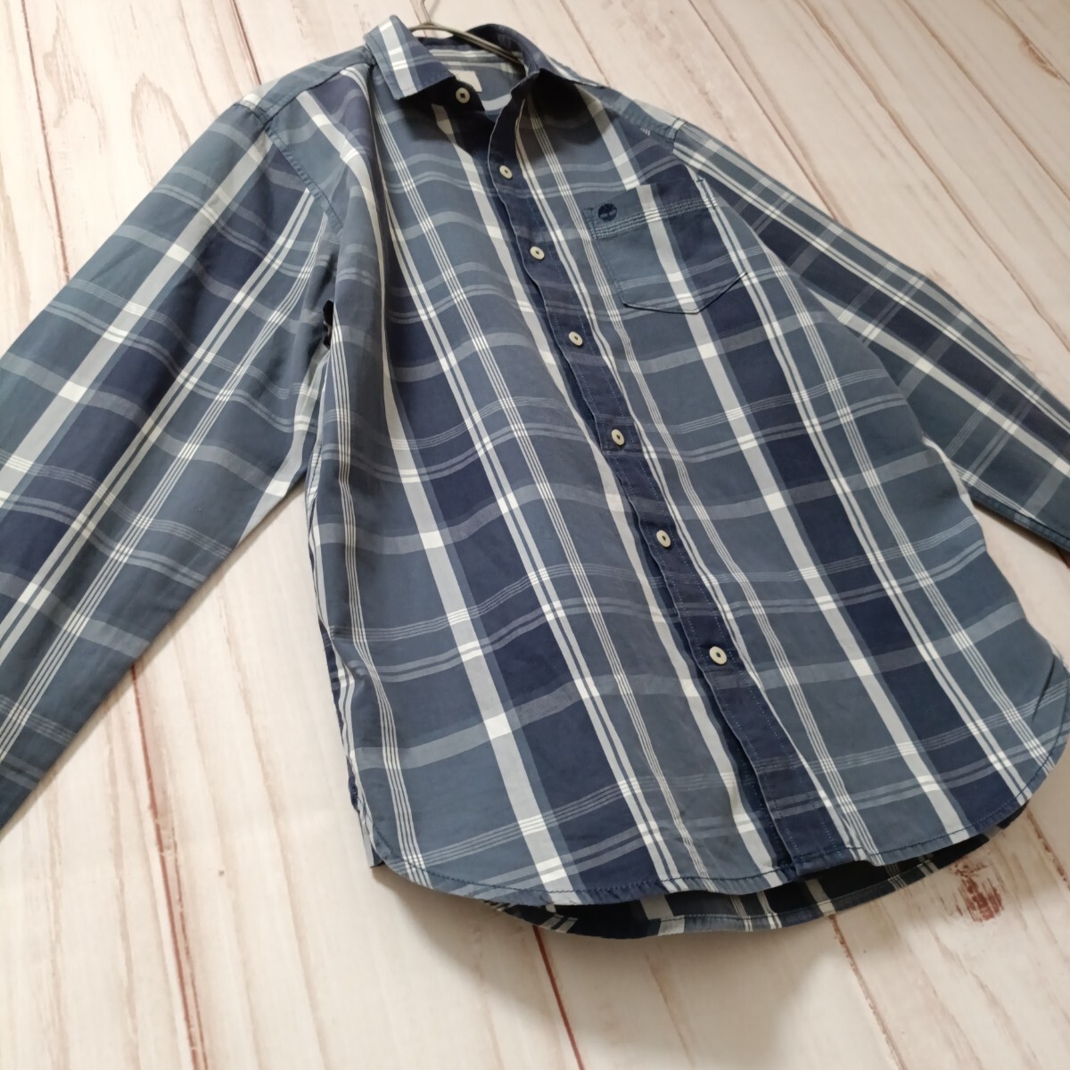 Timberland ティンバーランド 長袖シャツ ネイビー × ホワイト × グレー 白 チェック メンズ M 90s ブルー チェック柄