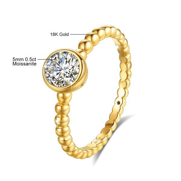証明書付き、【18Kゴールド結婚指輪】、モアッサナイト、0.5カラット、ラウンドカット、本物のゴールドジュエリー