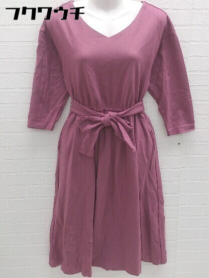◇ ◎ anatelier アナトリエ リボン付き 長袖 膝下丈 ワンピース サイズ36 パープル レディース
