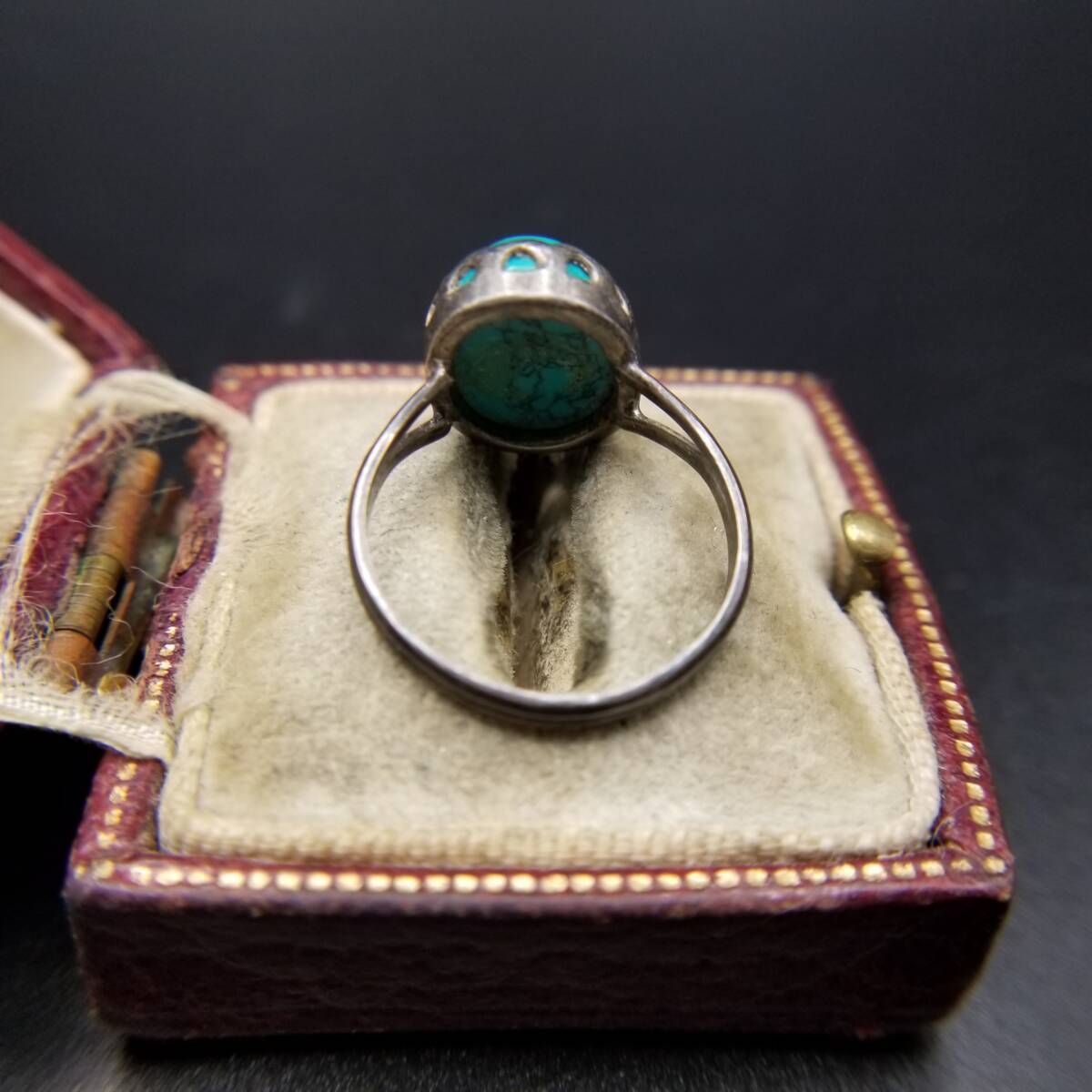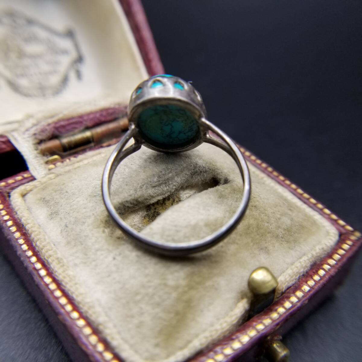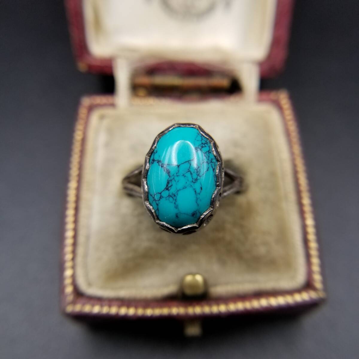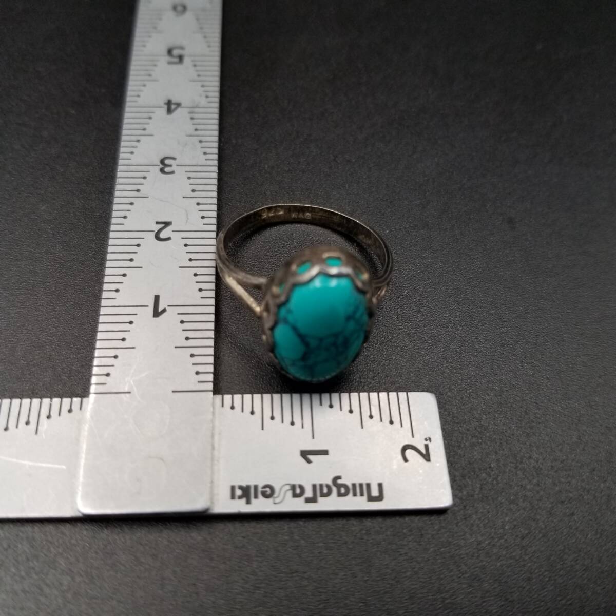 NAG ターコイズ オーバル カボション 925 シルバー ヴィンテージ リング レースリム 銀指輪 サウスウェスタンスタイル 鮮やかな色 R14-G