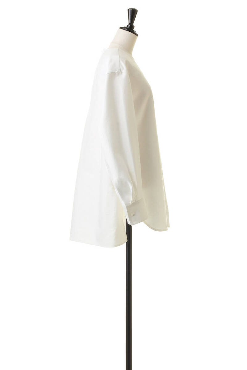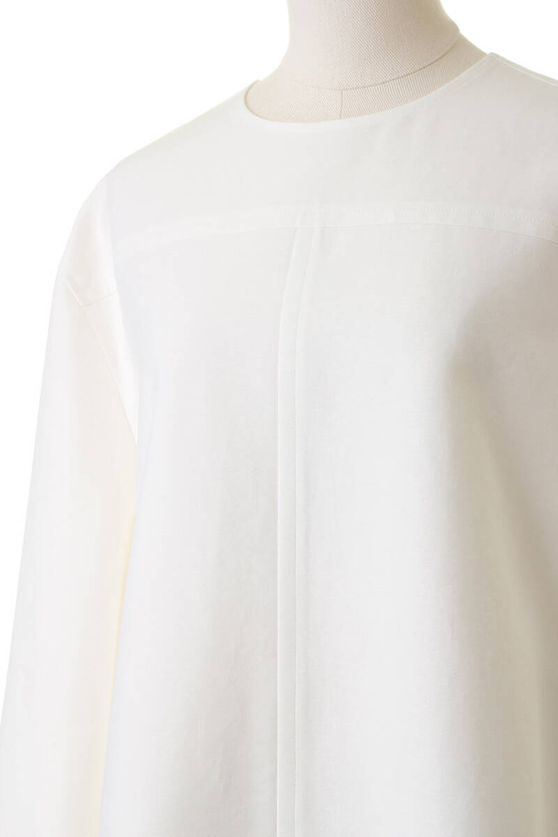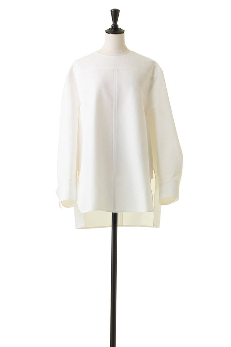 程よいハリ&光沢感のある風合い、ゆったりとしたシルエットのコットンクルーネックブラウス。