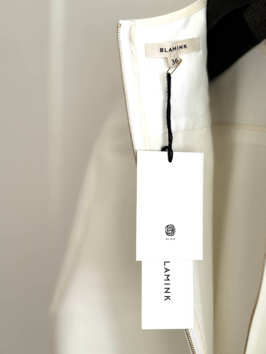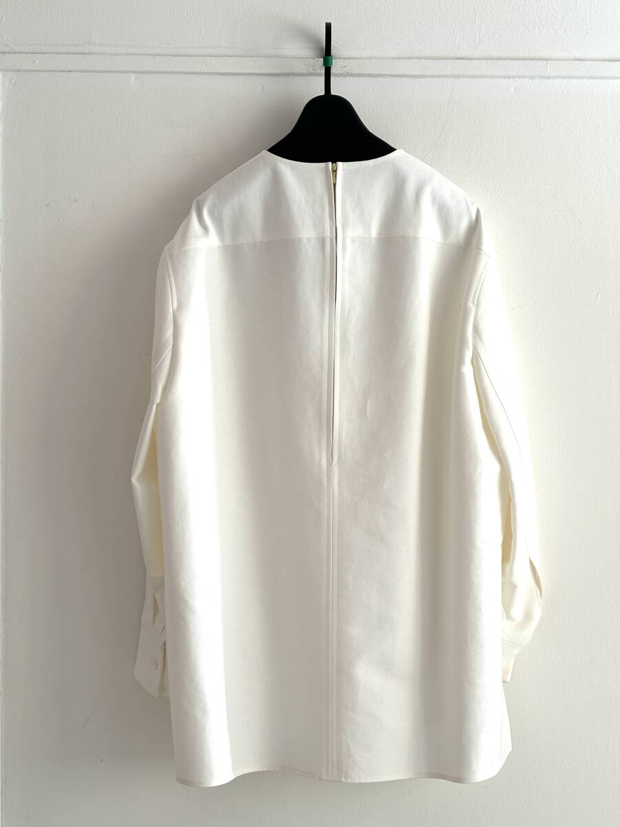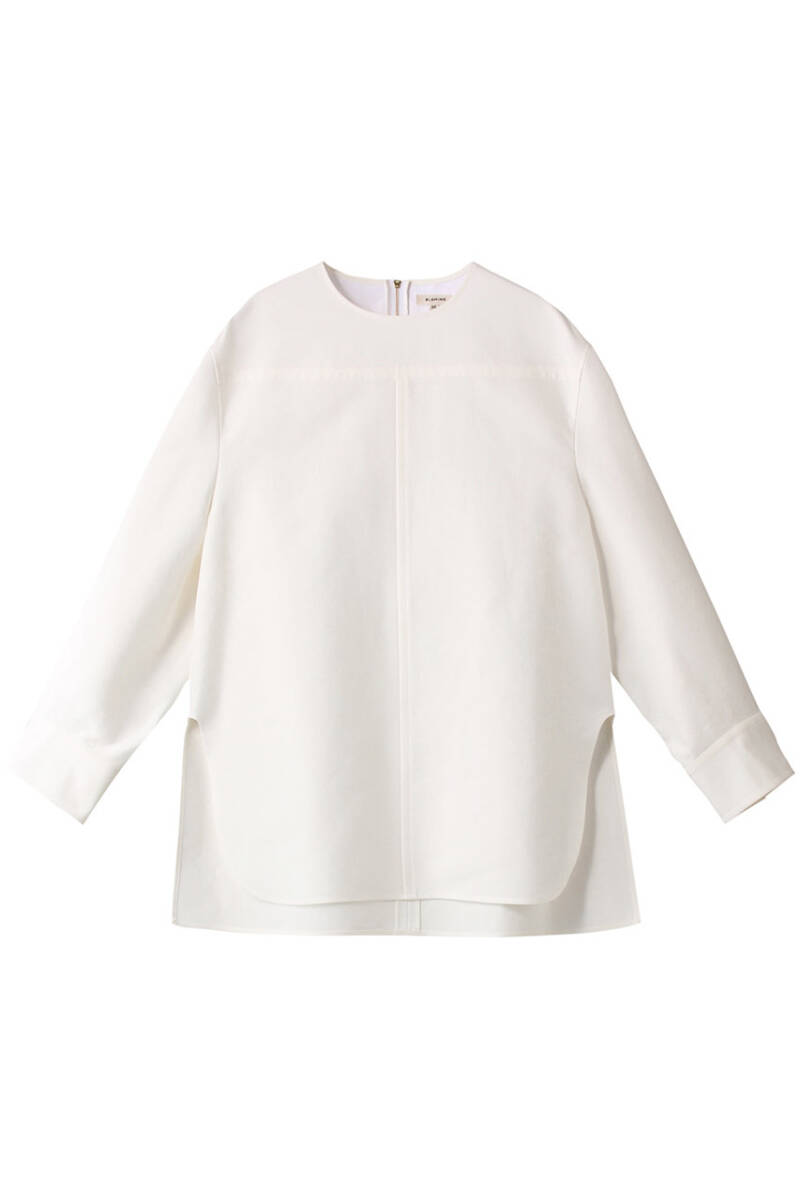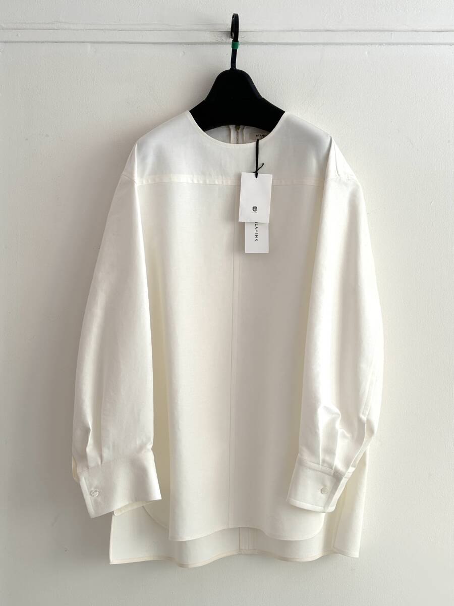 新品未使用 BLAMINK(ブラミンク)コットン クルーネック バックジップ ブラウス 36 WHITE やや厚手