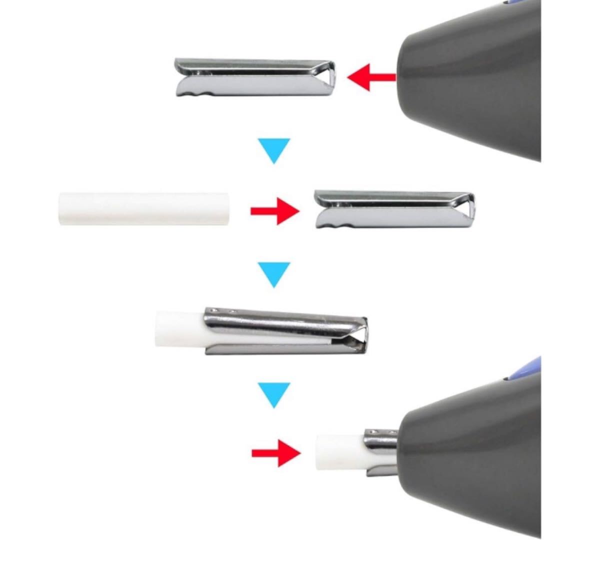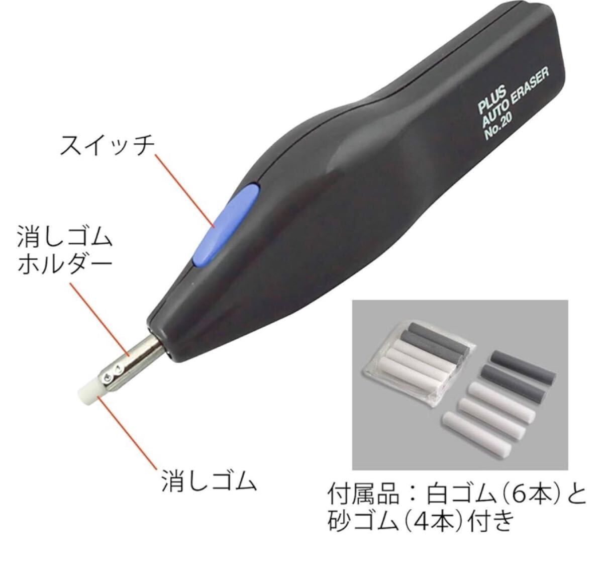 【特長1】小さなボディに強力パワー、細かい所もきれいに消せる、電池式の電動消しゴム
