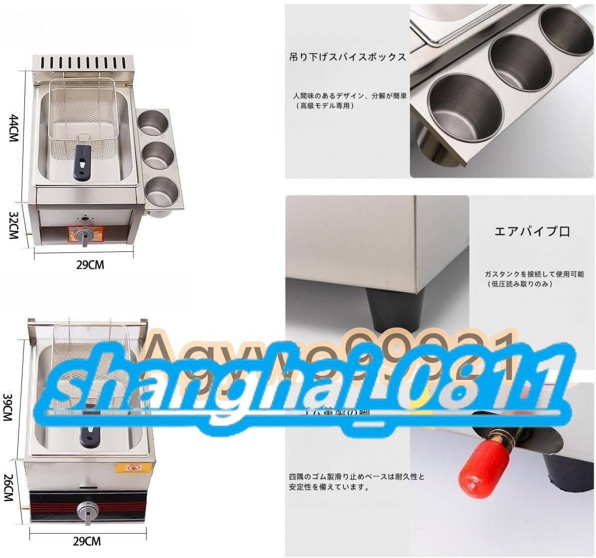 業務用ガスフライヤー:機械全体が一体型ステンレス鋼でできており、耐食性、耐熱性、清掃が容易で、長寿命です。