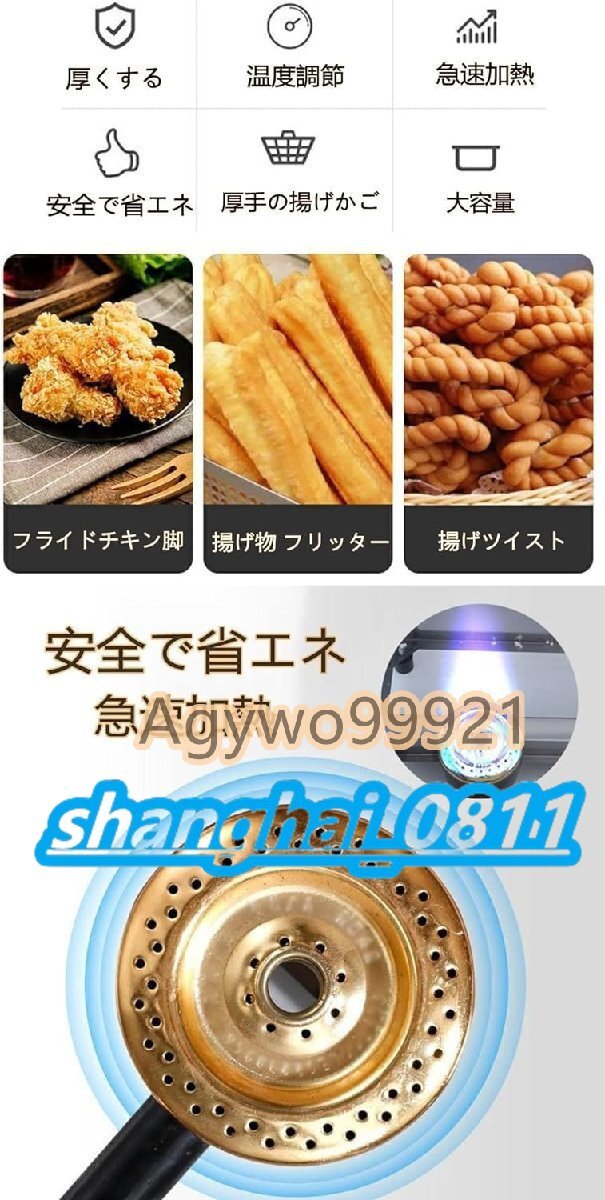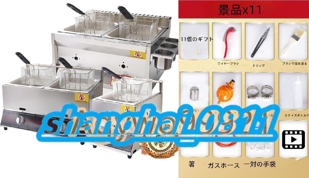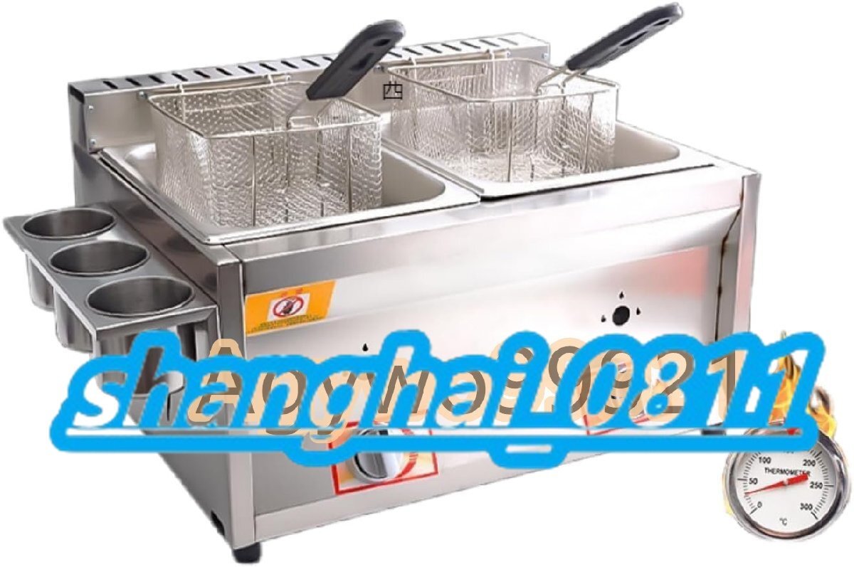 業務用フライヤー ステンレス鋼 揚げバスケット付き 温度調整機能 LPガス用 (55*44*34cm二重鍋+二重揚げバスケット)