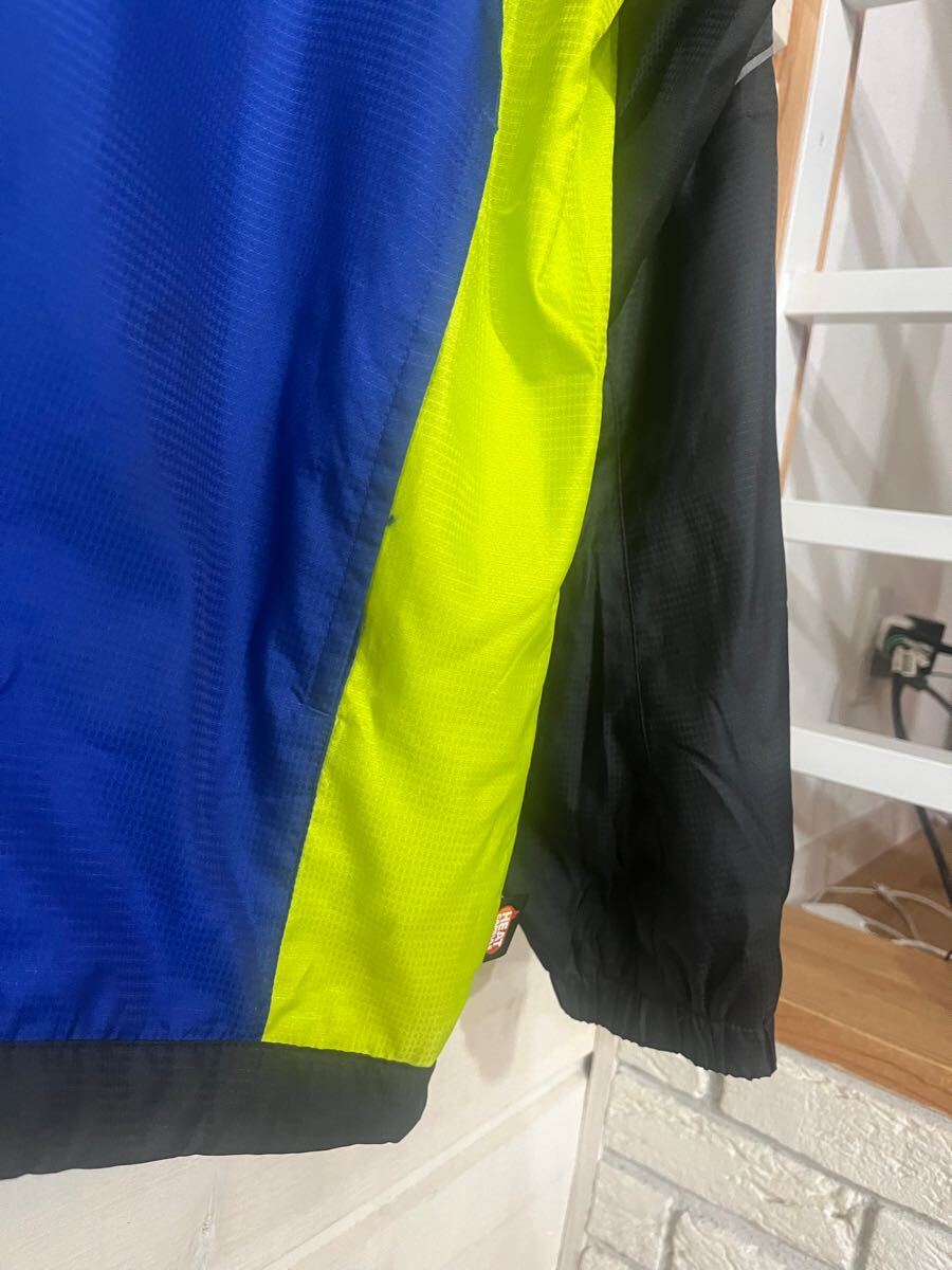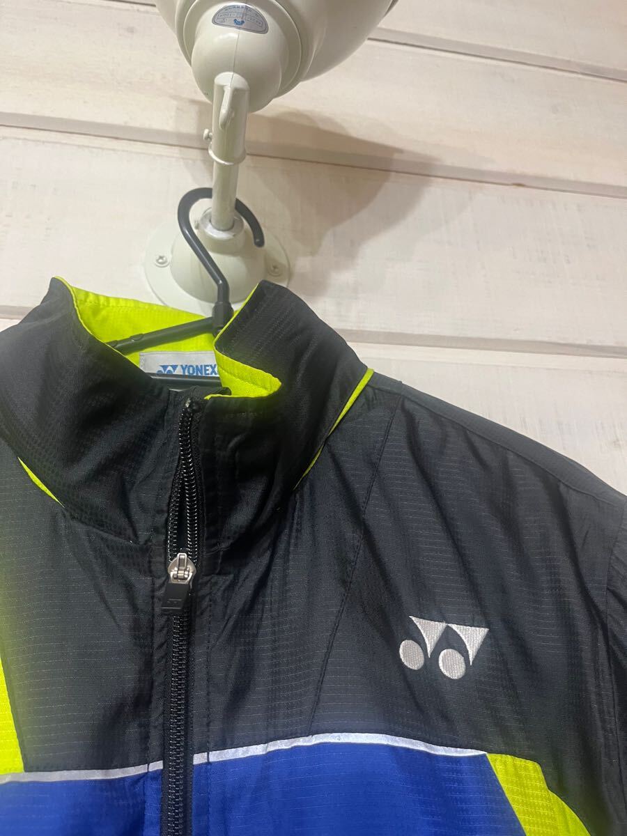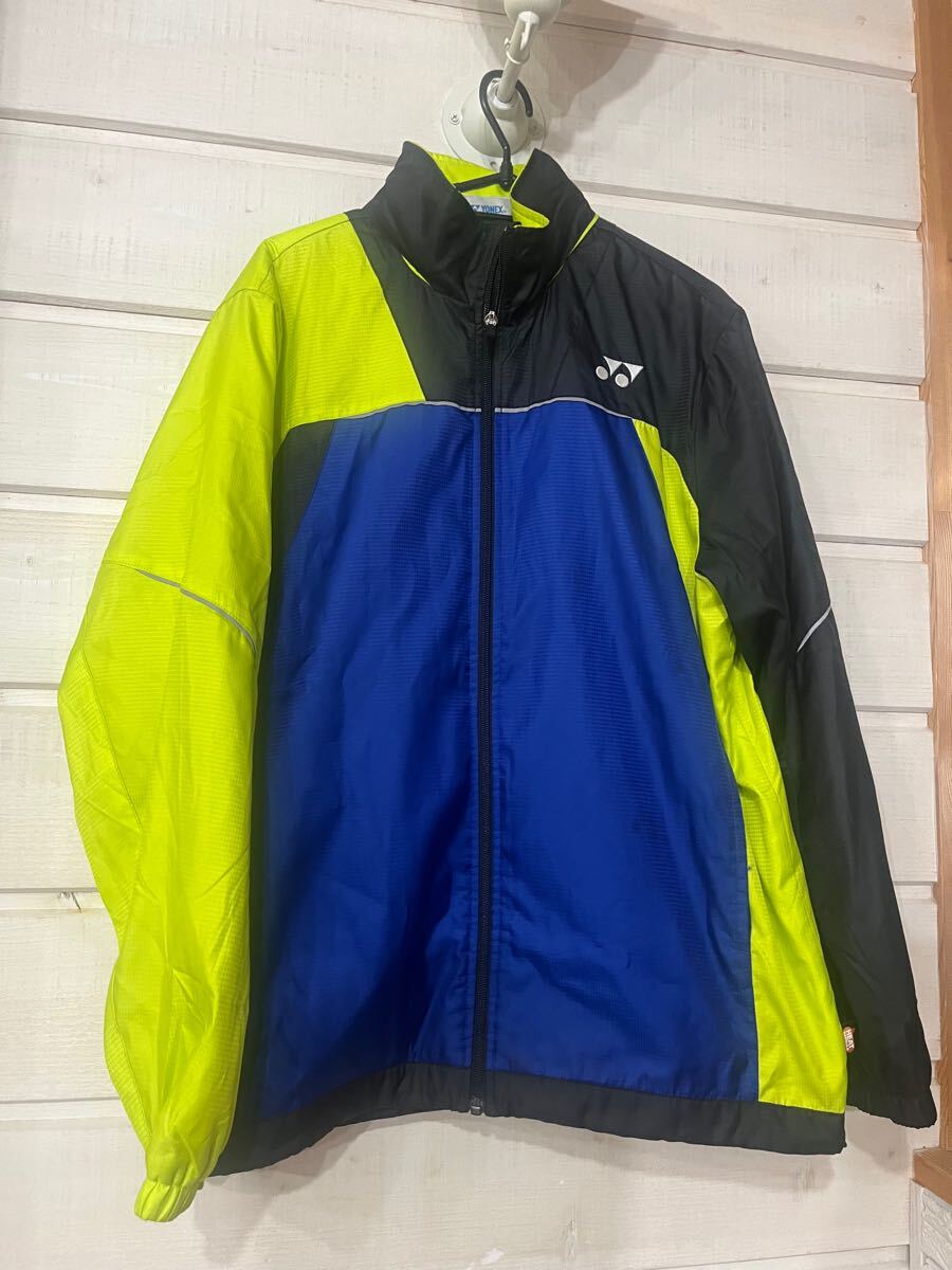 ヨネックスになります。表、裏ともポリエステル100。薄汚れあり。