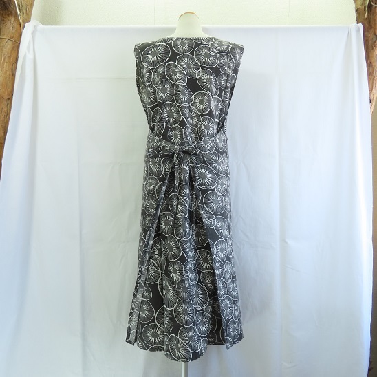 説 明:前身頃と後身頃は肩でのみ縫い合わせてあり、両サイドの紐を前後で結び合わせて着ますので体型にかかわらずご着用頂けます。