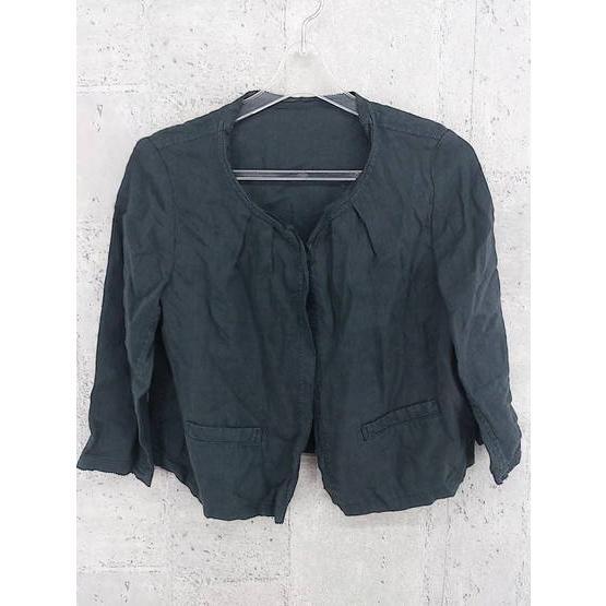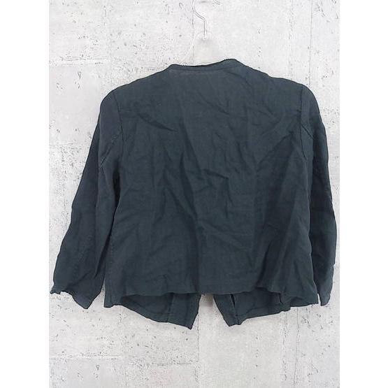 ◇ FRAMeWORK フレームワーク リネン100% 七分袖 ジャケット 38 ブラック系 *