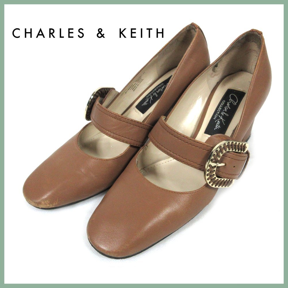 ☆★CHARLES & KEITH(チャールズ&キース)◆レザーバックルストラップパンプス◆サイズ24.5cm◆ブラウン◆ヒール6cm