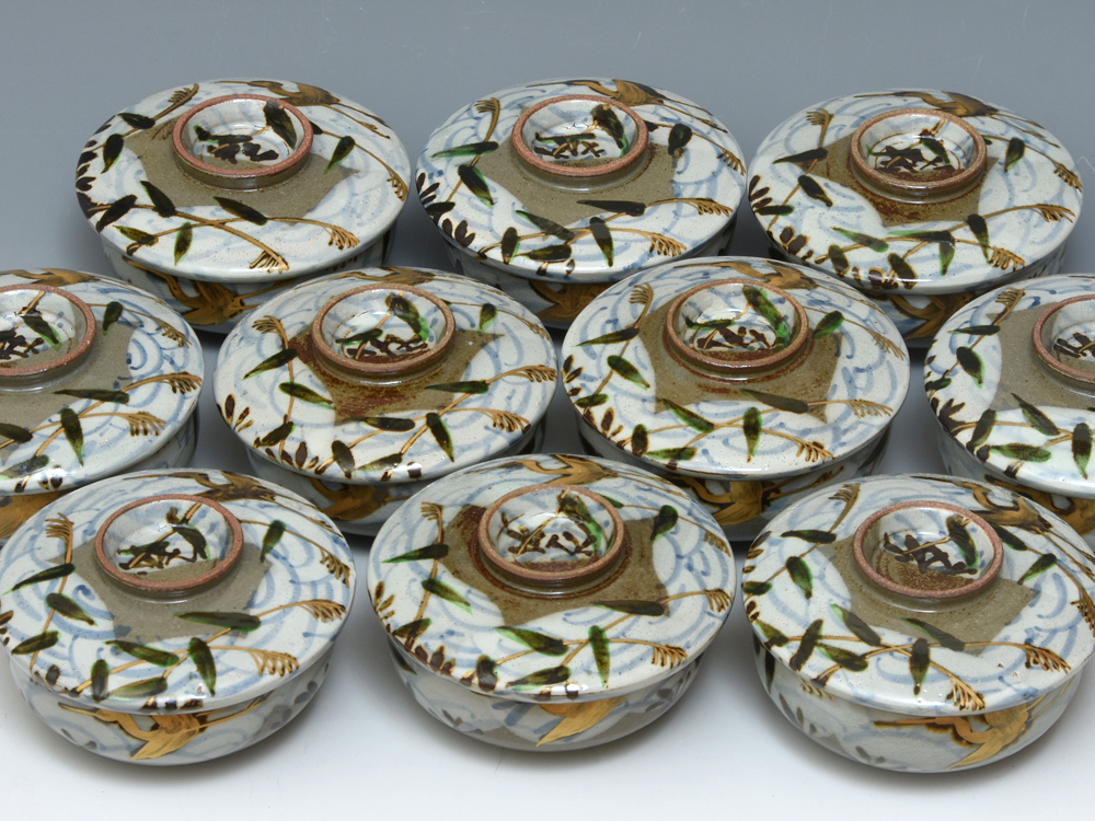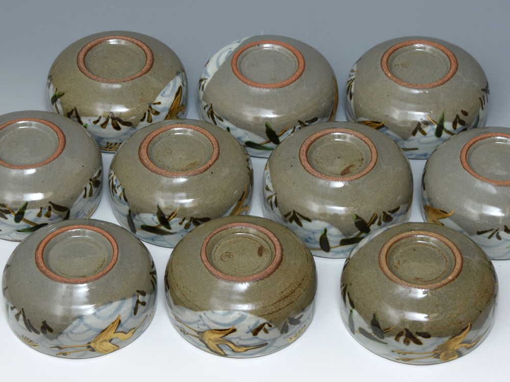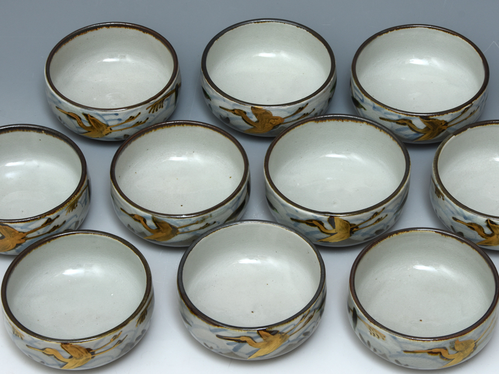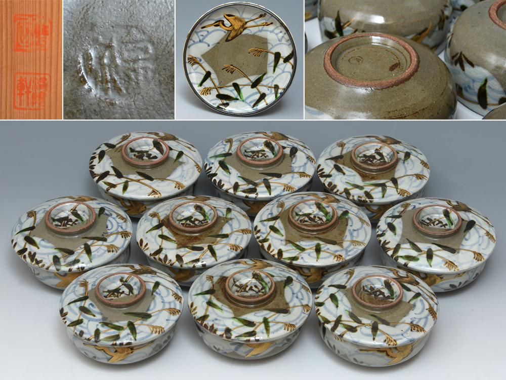 平安 京泉(造)乾山写 芦雁蓋物 10客 共箱 京焼 蓋茶碗 茶道具 懐石道具 茶懐石 料理皿 和食器 向付 |