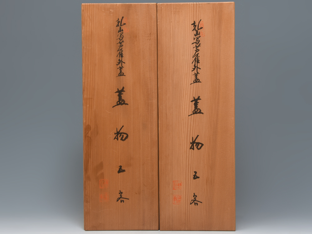 京泉(造)乾山写 芦雁蓋物 10客です。 身と蓋(表/裏に)芦と雁の絵が色絵で描かれた蓋物です。 細かな貫入も見受けられます。 高台内に銘「京泉」みられます。 使用歴のない未使用品で目立つキズや汚れは見られません。 共箱は二個あり一つの共箱に5客づつ収納されております。 ※撮影の際に生じた写り込みなどがございます。 ご理解の程よろしくお願い致します。 |