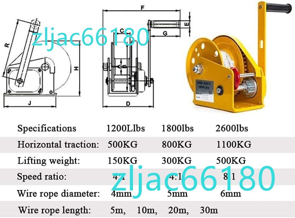 優れたリフティングデバイス:手動ウインチは小さくてポータブルで、使用時にスペースが多すぎません。設置が非常に簡単で、無力環境や制限された機会に使用するのに非常に適しています。4ケーブル長(5m、10m、20m、30m)のウインチは、優れた吊り上げ装置を提供するように設計されています。
