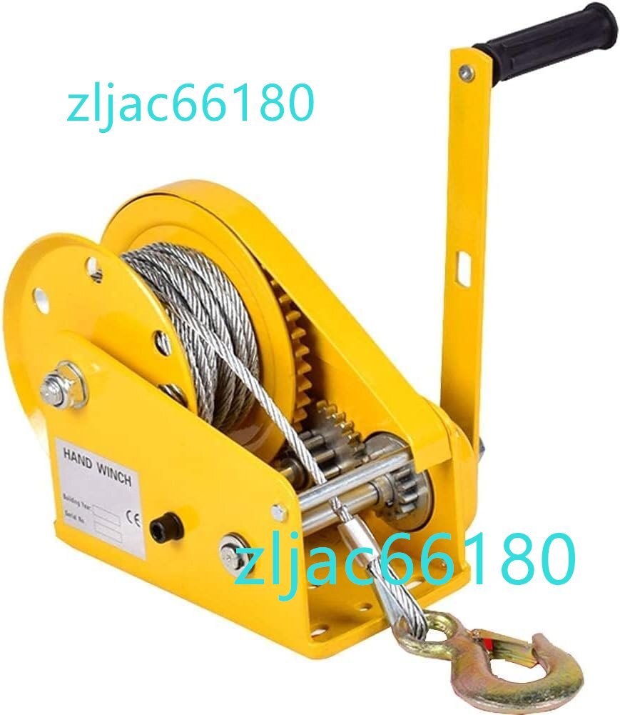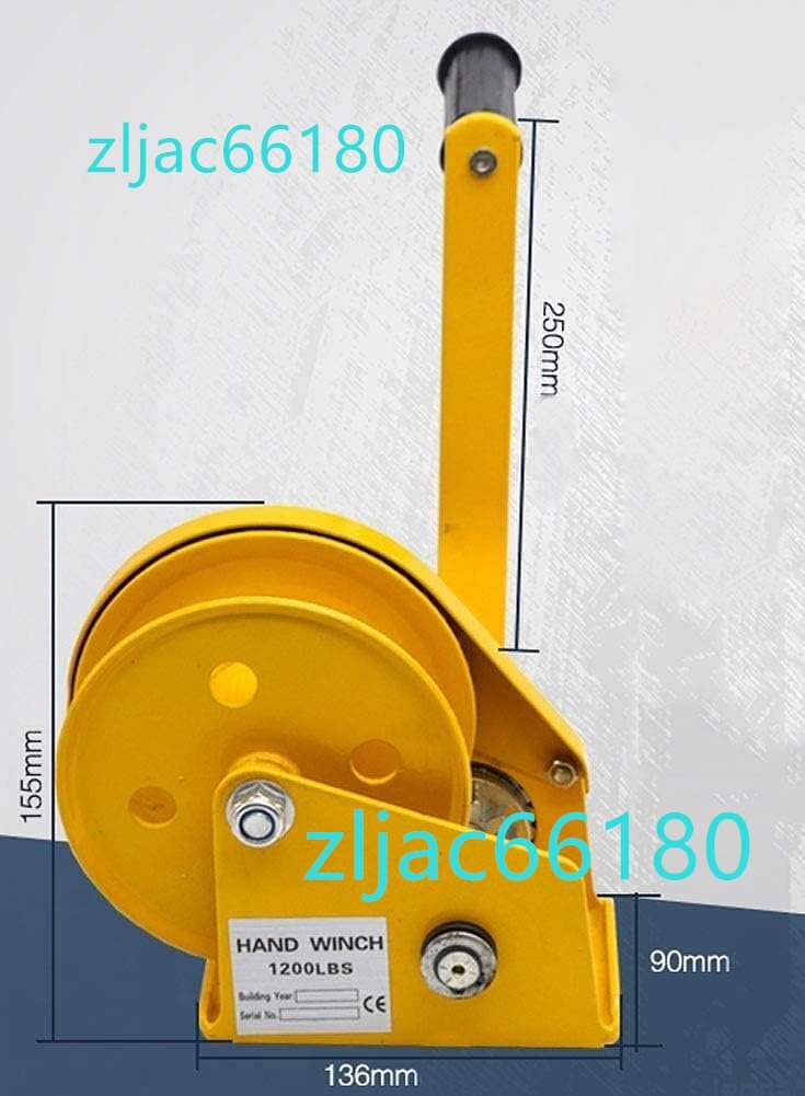 ハンドウィンチ、頑丈な手動クランク双方向ラチェットウインチケーブルとスチール製のフック、自動ブレーキ付きボートのトレーラー、持ち