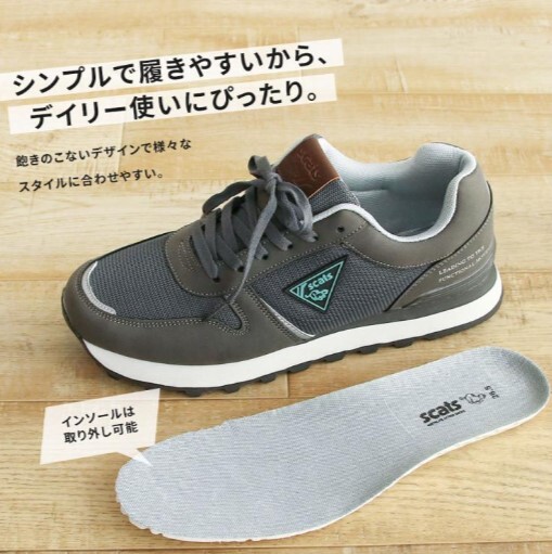 新品 scats[スキャッツ] メンズ スニーカーSC-010グレー25cm