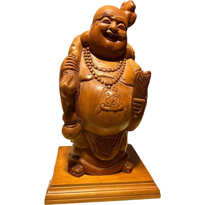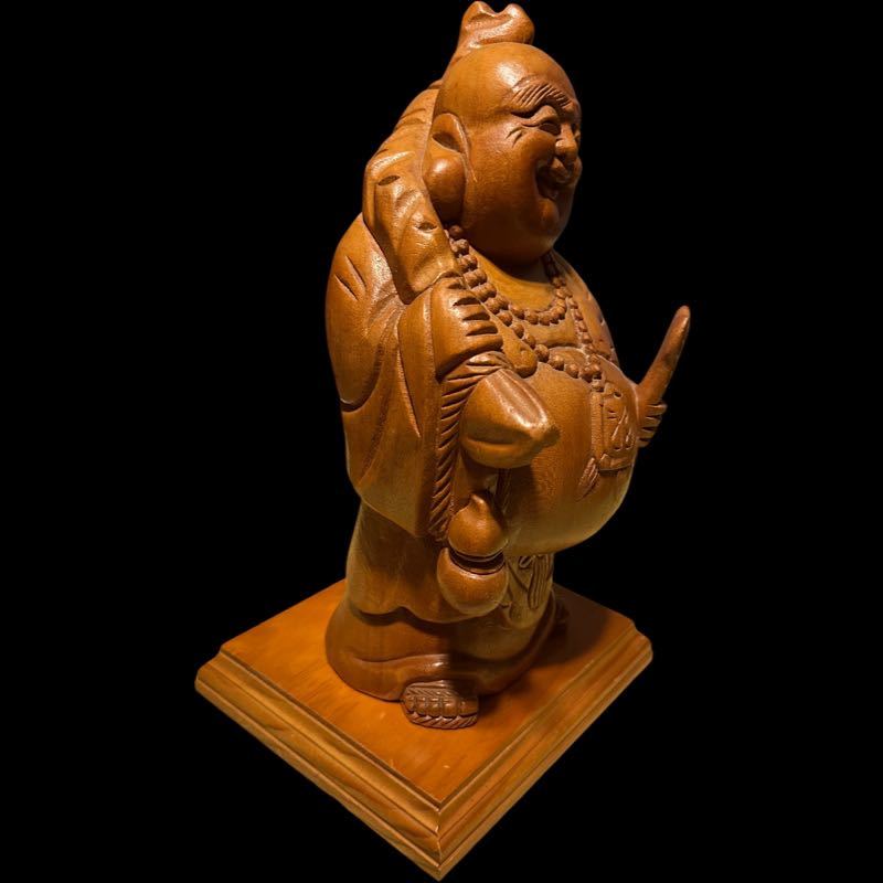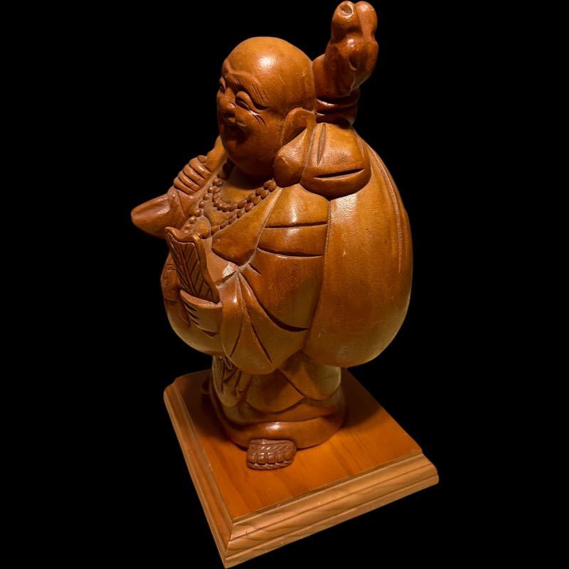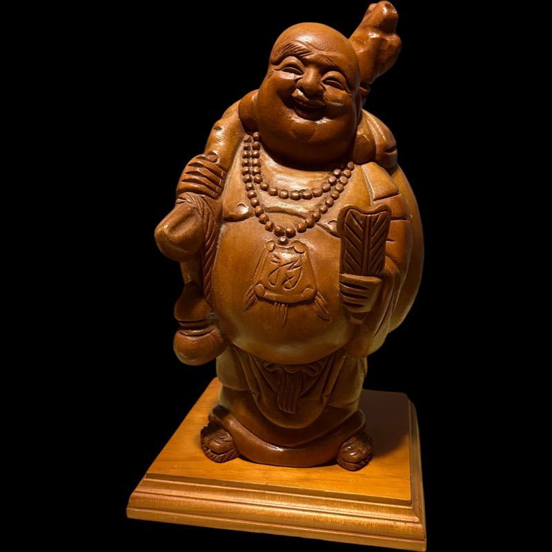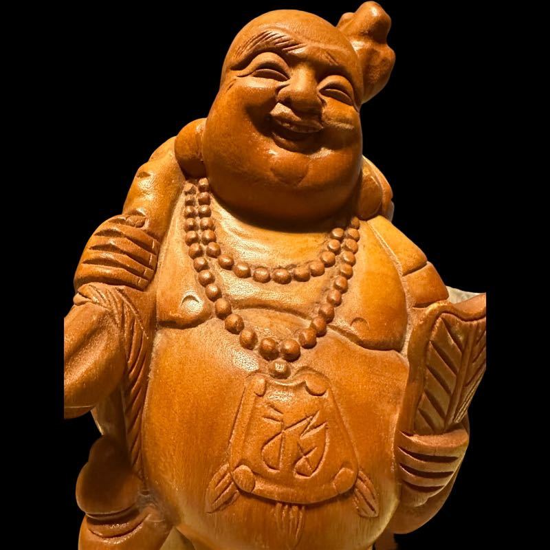 布袋さん 置物 木彫り 縁起物 オブジェ 開運 七福神 アンティーク 木工彫刻