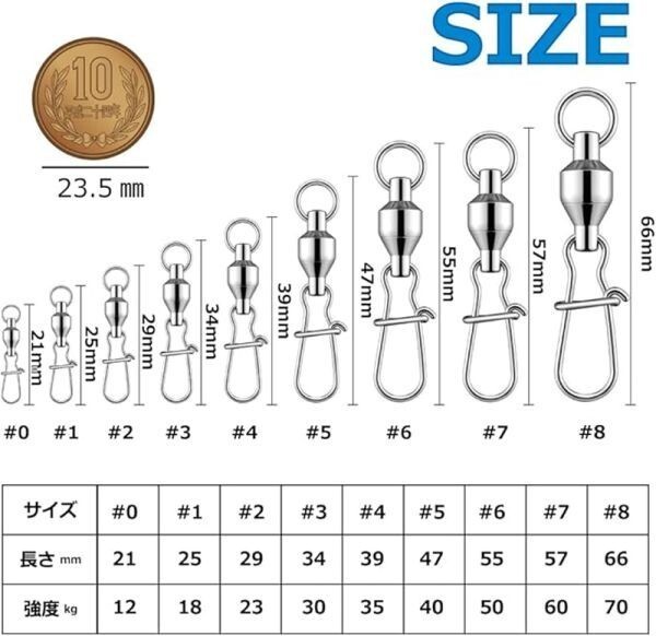 9種類のラインナップ【#0 ~ #8】 Freell ボールベアリングスイベル 30個セット