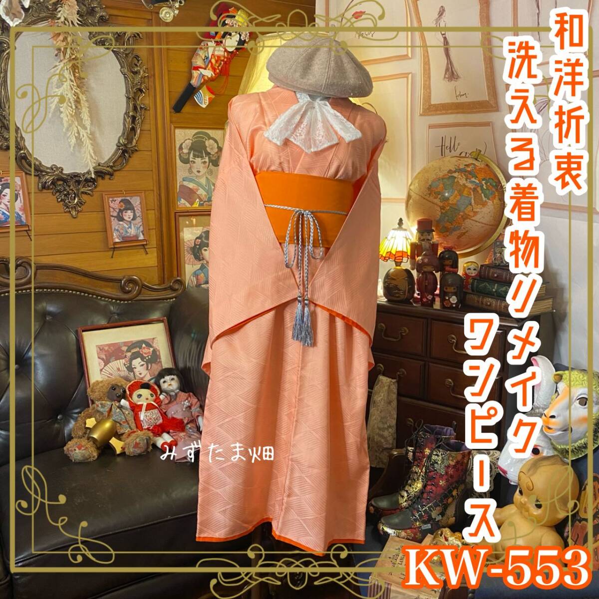 【 和洋折衷 着物 リメイク ワンピース ドレス 洗える 化繊 帯サッシュベルト レトロ 古着 和 ハンドメイド KW-553 】