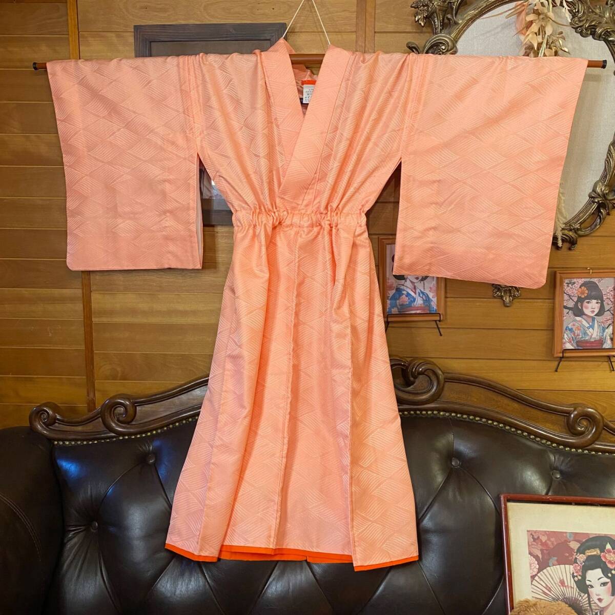 ①古着リメイク: 色無地 単衣 着物 リメイクワンピース