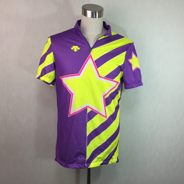 A869▼藤色/黄 半袖サイクリングジャージ◆XLG
