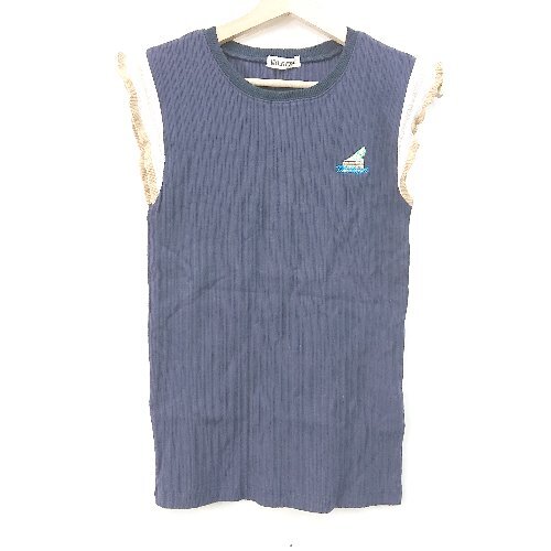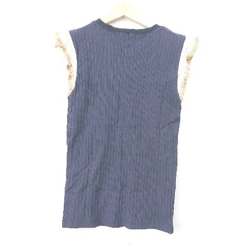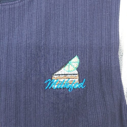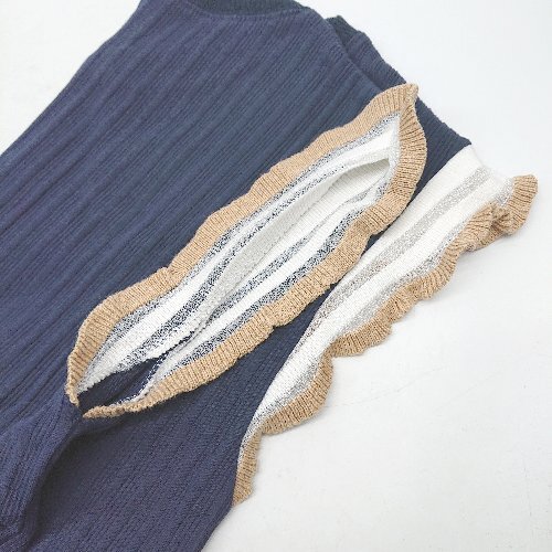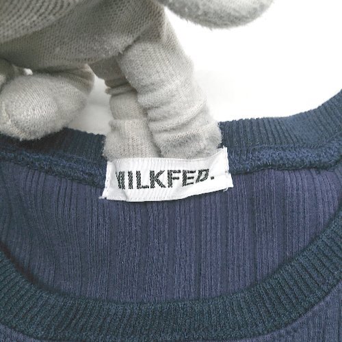 ◇ MILKFED カジュアル リブ ニット フリル レイヤード カットソー サイズONE ネイビー レディース E