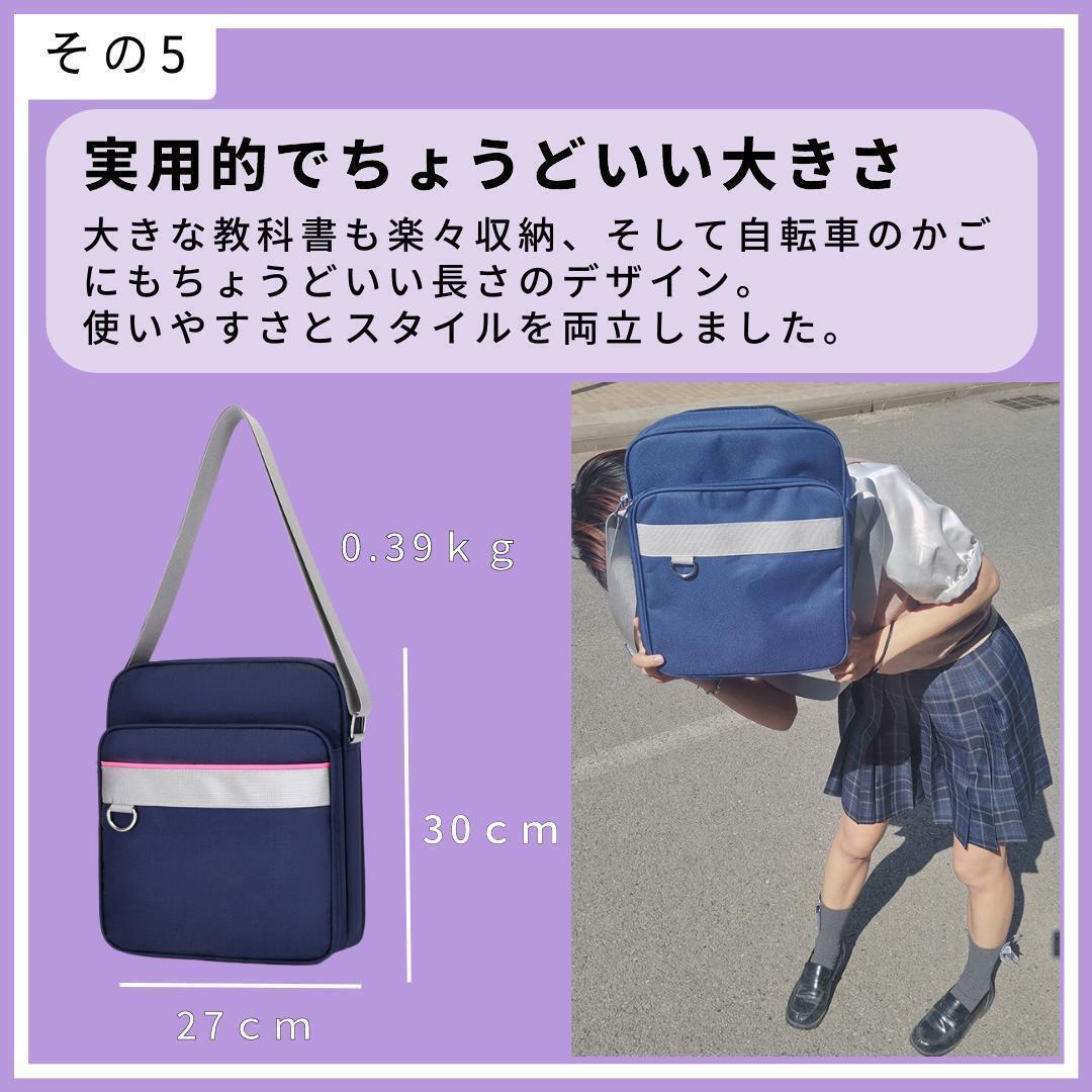 学校に最適で使いやすいと評判の商品です。デザインも可愛く、高校生に最適です。男の子も女の子も使え、塾に行くときなどにも活用されています。大きい教科書も入るサイズで、自転車のかごにも収まると好評です。