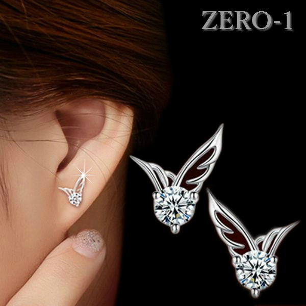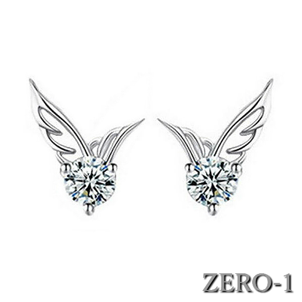 LDL1245# 1粒 ダイヤ ピアス 羽根 フェザー シンプル ラインストーン スワロ キラキラ シルバー レディース ペア価格